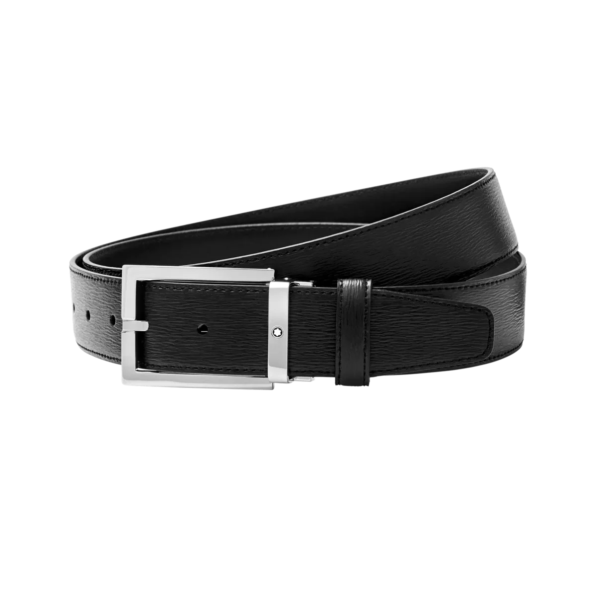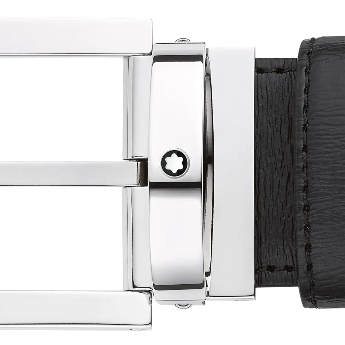 Catarama dreptunghiulară din oțel inoxidabil lucios. Curea din piele Westside neagră, auto-reglabilă, 3,5 cm x 120 cm.