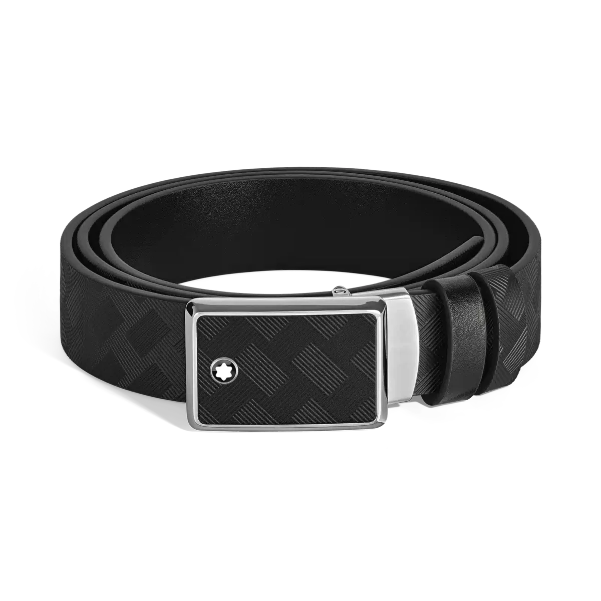 Cureaua reversibilă de 35 mm combină designul elegant al unei catarame dreptunghiulare cu versatilitatea a două curele distincte din piele. Catarama, cu finisaj elegant din paladiu lucios și detalii din piele neagră embosată cu modelul Extreme 3.0, adaugă o notă de eleganță discretă stilului tău. Cureaua oferă versatilitate și rafinament, având două aspecte distincte într-un singur accesoriu. O parte prezintă piele neagră Extreme 3.0 imprimată, cu un design îndrăzneț și texturat, în timp ce partea opusă prezintă piele neagră elegantă și moale, pentru un finisaj atemporal și rafinat.
