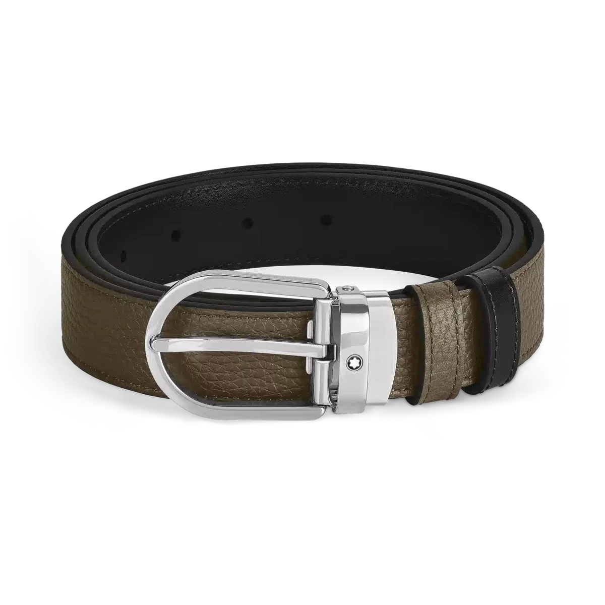 Această curea reversibilă combină eleganța discretă cu caracterul practic, oferind două stiluri distincte într-un singur accesoriu. Prezentând catarama noastră distinctivă Montblanc în formă de potcoavă, cu finisaj din paladiu, o parte a curelei de 30 mm este realizată din piele granată de culoare kaki, în timp ce partea din spate este realizată din piele Meisterstück neagră, pentru un plus de rafinament clasic.