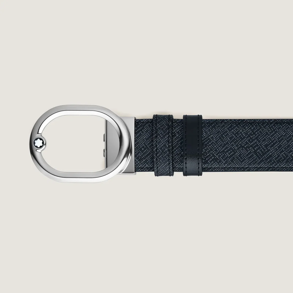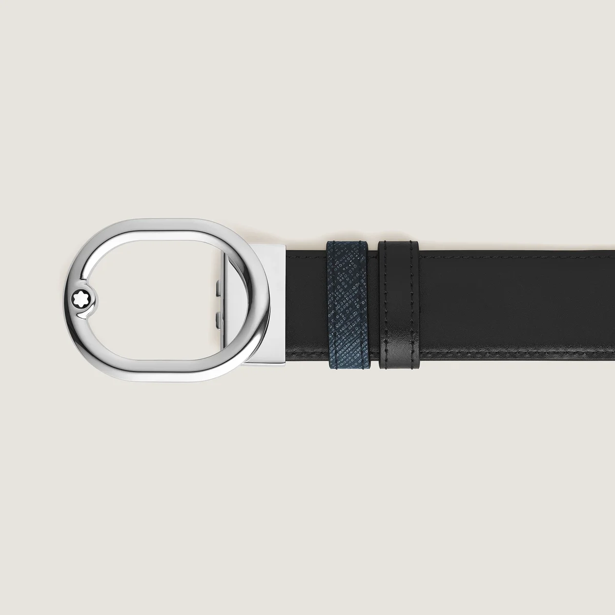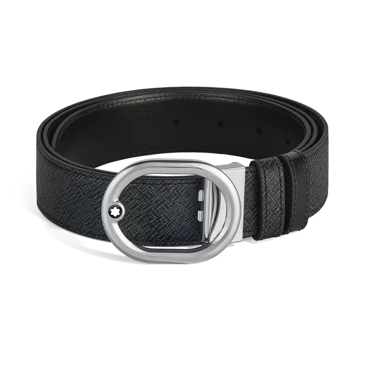 Cureaua reversibilă L’Ovale de 35 mm combină eleganța unei catarame ovale cu finisaj paladiu cu versatilitatea a două curele distincte din piele. Catarama, diferită de modelele tradiționale pătrate, adaugă o notă de prospețime stilului dvs. Cureaua oferă două opțiuni: o parte este din piele de vițel imprimată Sartorial albastră tweed, pentru un aspect cald și texturat, iar partea opusă este din piele Meisterstück neagră, oferind o opțiune clasică și sofisticată pentru orice ocazie.