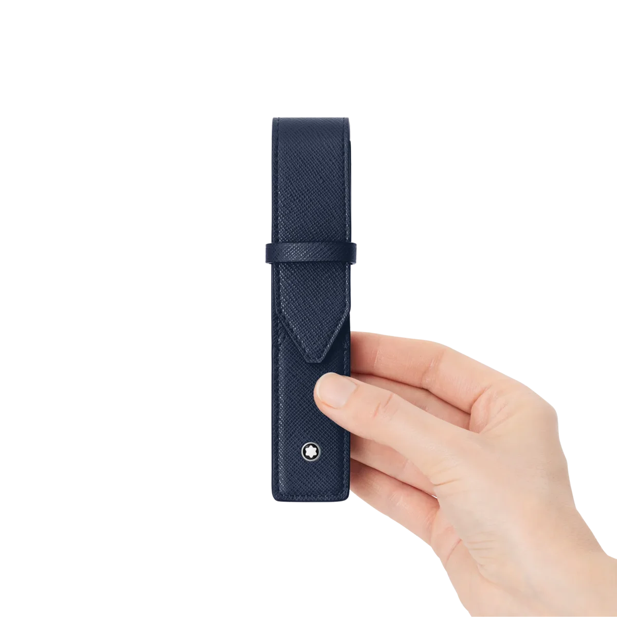 Păstrați-vă instrumentul de scris în siguranță și cu stil în această husă specială pentru stilouri. Pielea albastră din piele naturală adaugă un farmec tactil, în timp ce silueta suprapusă amintește de forma unui plic, într-un tribut suplimentar adus cuvântului scris.