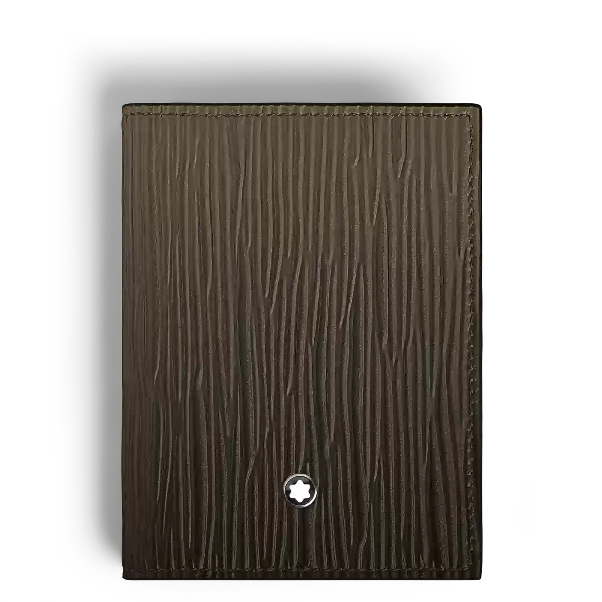 Acest portcard sofisticat este confecționat din piele Corteccia de culoare kaki, cu un motiv în relief care imită scoarța de copac și efect Sfumato aplicat manual. Are un compartiment pentru cărți de vizită și sloturi pentru patru carduri de credit, combinând practicitatea cu eleganța. Finisat cu emblema Montblanc pe partea din față, este un accesoriu elegant și funcțional pentru uz zilnic.