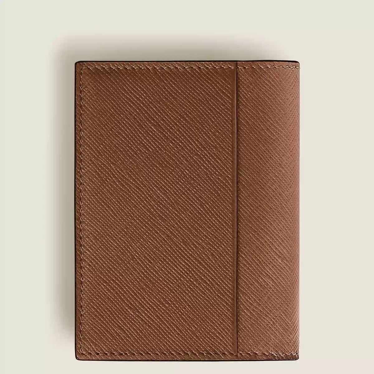 Compact, dar versatil, acest portcard este confecționat din piele embosată, într-o culoare elegantă fauve. Proiectat cu detalii funcționale în interior și exterior, are trei sloturi pentru carduri de credit, un compartiment pentru cărți de vizită și un buzunar suplimentar în interior, iar exteriorul include un slot suplimentar pentru un al patrulea card de credit.