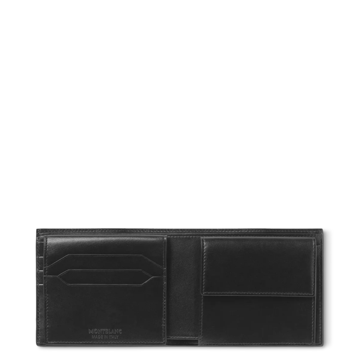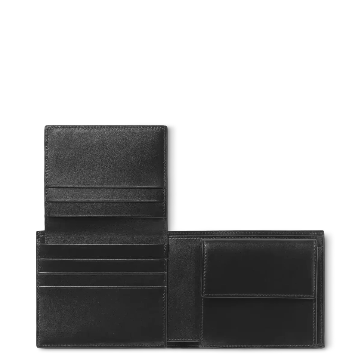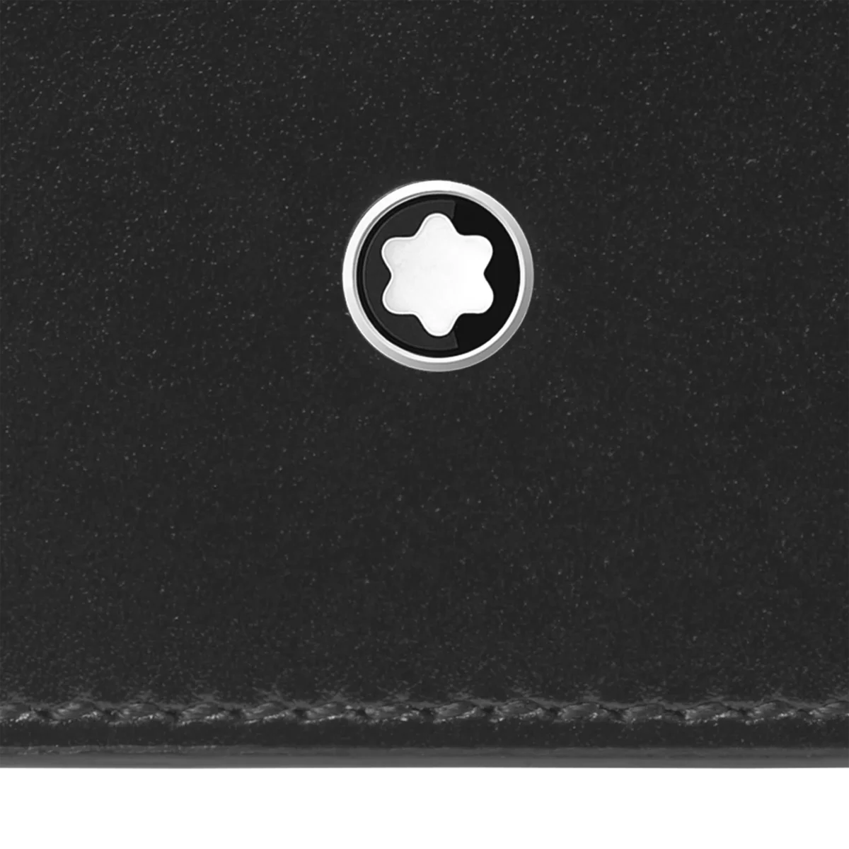 Confecționat din piele netedă și căptușit cu țesătură neagră, acest portofel Meisterstück poate conține până la 10 carduri de credit în sloturi dedicate, în timp ce se potrivește confortabil în buzunarul pantalonilor sau al jachetei. Portofelul sofisticat are, de asemenea, un compartiment pentru monede cu închidere cu clapă, plus două compartimente suplimentare pentru bancnote.