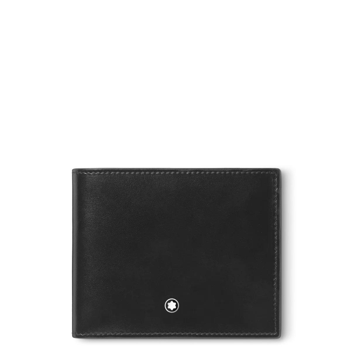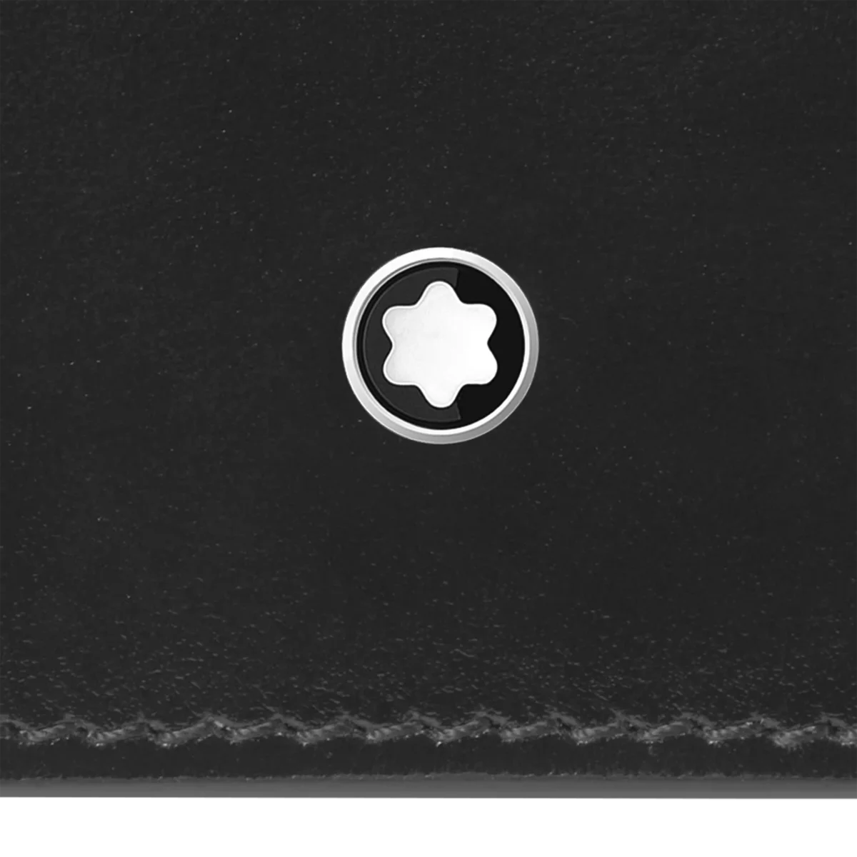 Un portofel compact din piele, cu buzunar cu clapă pentru monede, Meisterstück 4cc combină eleganța discretă cu funcționalitatea practică. Conceput pentru obiectele esențiale de zi cu zi, portofelul are patru sloturi pentru carduri de credit, două compartimente pentru bancnote, un buzunar pentru monede și un buzunar suplimentar pentru chitanțe. Confecționat din piele elegantă și căptușit cu țesătură neagră, este finisat cu emblema Montblanc.