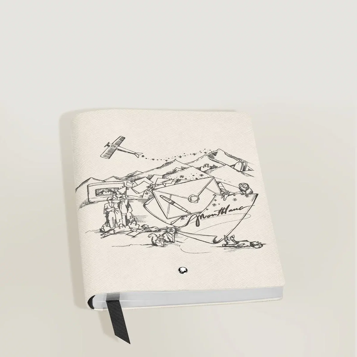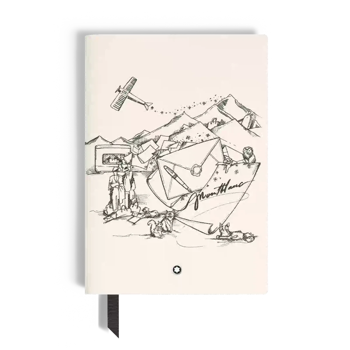 Caietul prezintă o ilustrație monocromă în stil desenat manual. Inspirată de o reclamă Montblanc din 1924 în care apare un cuplu de călători, ilustrația îi plasează acum pe cei doi călători la poalele muntelui Mont Blanc, înconjurați de avioane vintage, trenuri și scrisori în zbor. Motivul nostalgic celebrează nu numai călătoria fizică și minunea explorării, ci și călătoria povestirii peste timp și distanță, reflectând credința durabilă a Montblanc în conexiunea prin scris. Acest caiet, realizat manual în Italia din cele mai fine piei, are 96 de foi rafinate, concepute pentru a vă surprinde gândurile și visele. Combinând eleganța cu practicitatea, acest caiet de dimensiuni medii trece cu ușurință de la birou la geantă, gata să vă însoțească în momentele cele mai dragi. Fabricat în Italia. Dimensiuni 150 x 210 mm. Nr. de identificare MB136668