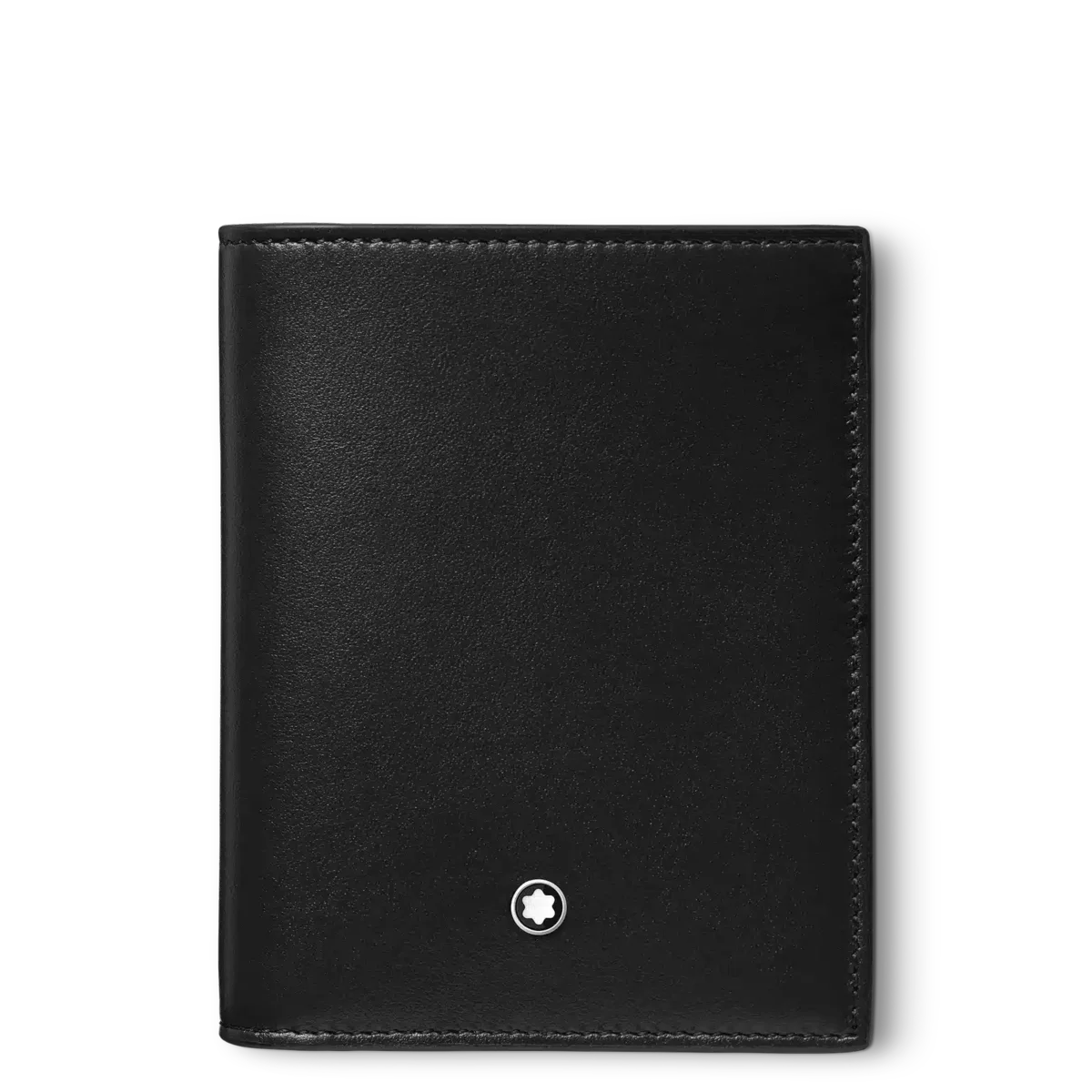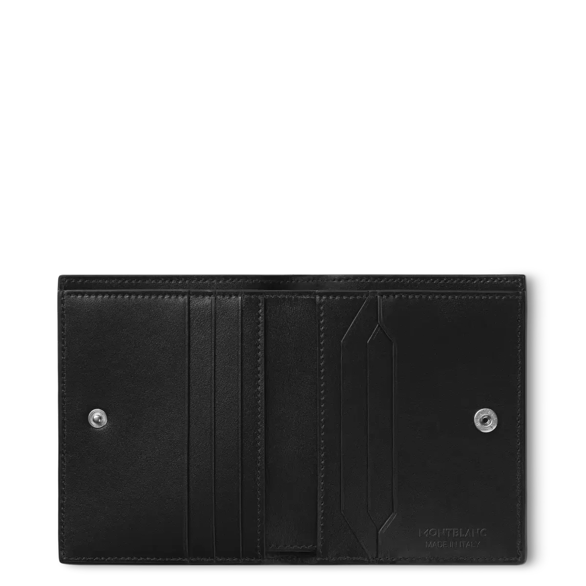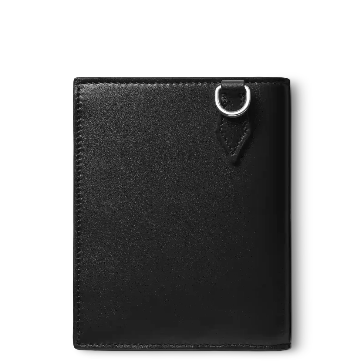 Portofelul Meisterstück Compact cu șase sloturi pentru carduri este confecționat dintr-o nouă piele neagră cu luciu intens. Noul său design interior geometric pur îmbunătățește esența funcționalității, cu multiple sloturi pentru carduri și buzunare pentru bani și chitanțe. Acest portofel poate fi purtat confortabil cu o curea pentru gât (vândută separat) sau pus în buzunar.