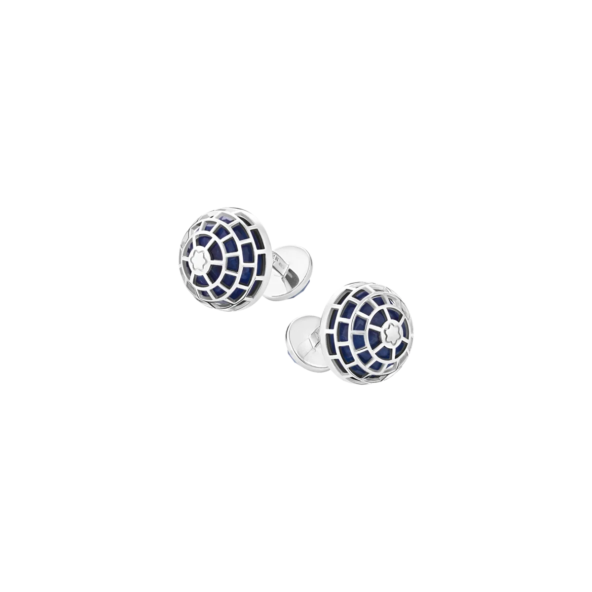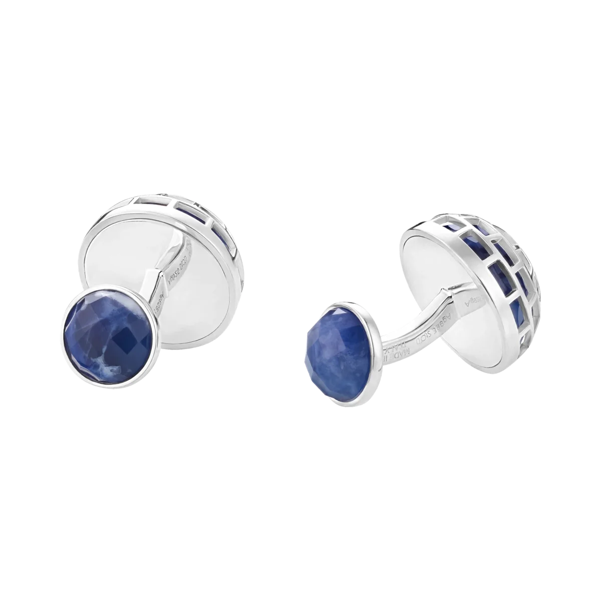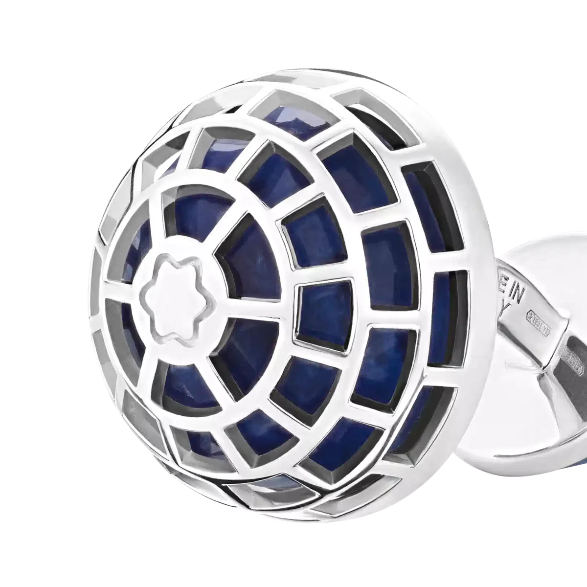 Acești butoni Montblanc Meisterstück sunt realizați din argint, cu o piatră sodalit albastră încadrată într-o formă contemporană de cupolă și completată de emblema iconică Montblanc gravată. Partea din spate a piesei este, de asemenea, decorată cu o piatră sodalit rotundă.