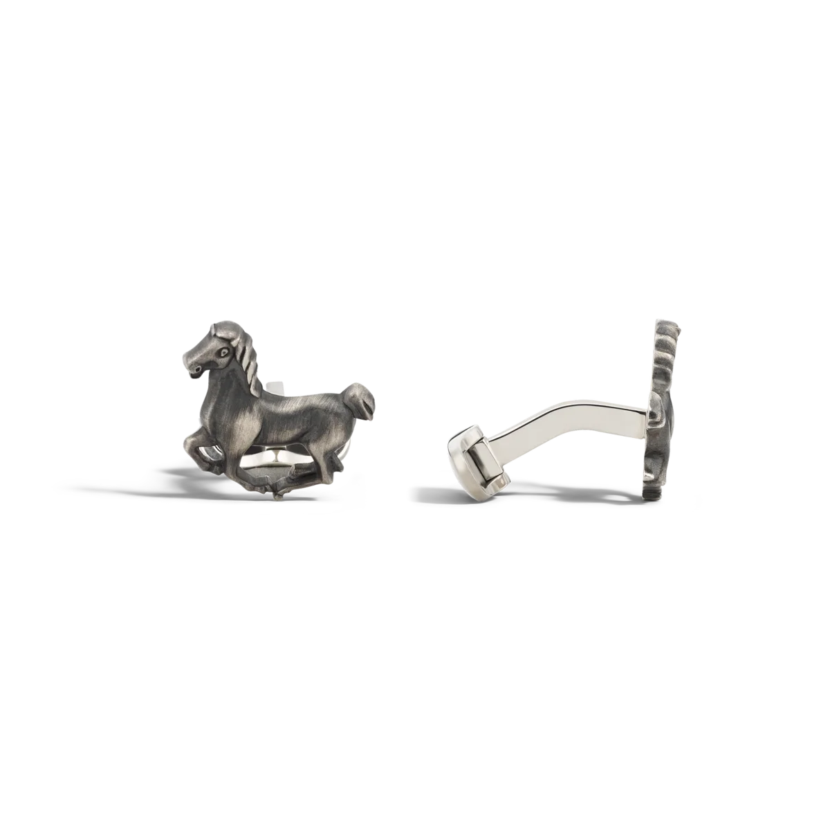Butoni din argint dedicați colecției Legend of Zodiacs The Horse. Această bijuterie este decorată cu o reproducere abilă a unei figuri de cal gravate manual, în onoarea atât a semnului zodiacal, cât și a cailor rapizi și cu picioare lungi din China antică. Cu picioare rapide, bine proporționate și parcă zburând ca vântul, aceștia erau numiți „tianma” – cai cerești. Cele mai vechi referințe îi descriu ca un simbol al pozitivității și al promisiunii.