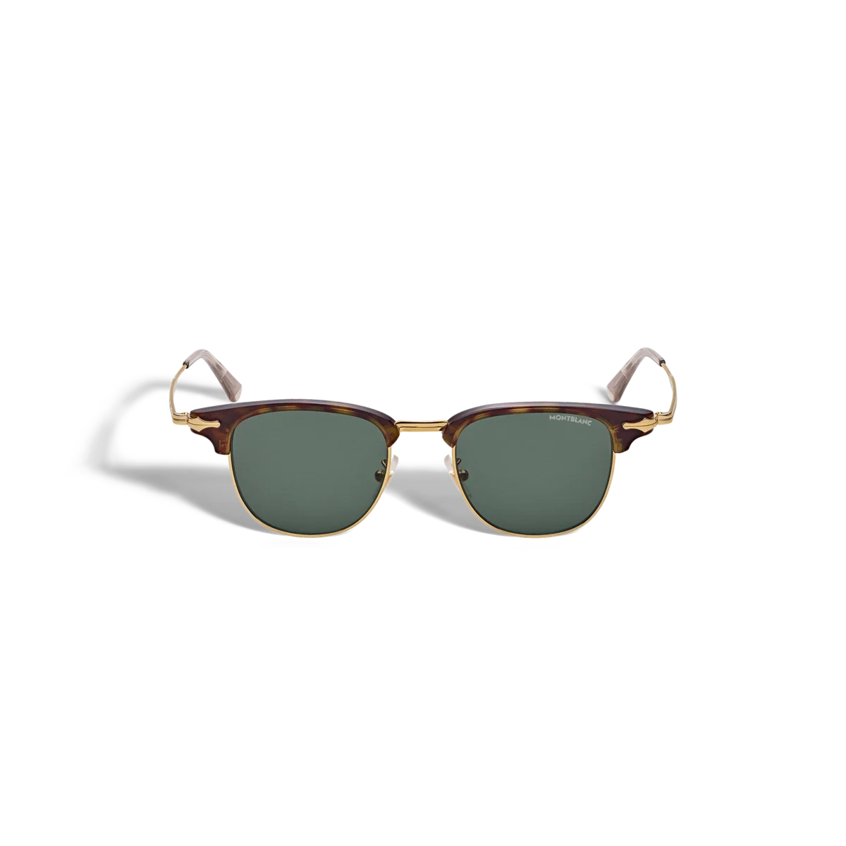 Acești ochelari de soare în stil dreptunghiular au o ramă metalică aurie și lentile verzi. Inspirat de designul peniței instrumentelor de scris, un detaliu decorativ în formă de peniță este prezent pe designul brațelor metalice. Logo-ul Montblanc este gravat cu laser pe lentila stângă, iar modelul antiderapant este gravat cu laser pe partea interioară a vârfurilor brațelor pentru a spori confortul.