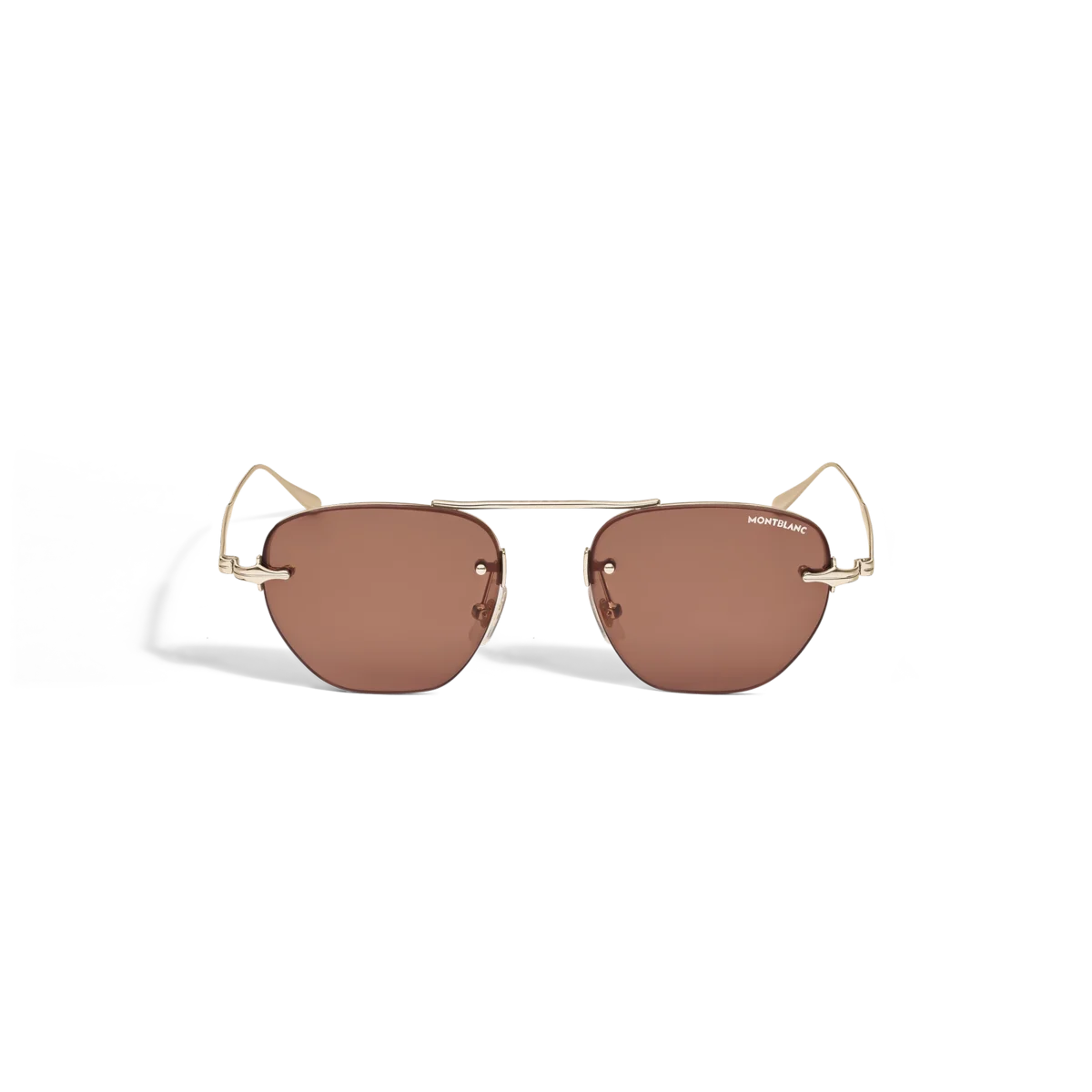 Acești ochelari de soare în stil rotund au o ramă metalică aurie și lentile maro. Inspirat de designul peniței instrumentelor de scris, un detaliu decorativ în formă de peniță este prezent pe designul metalic al brațelor. Logo-ul Montblanc one line este gravat pe partea dreaptă a brațului, iar logo-ul este gravat cu laser pe lentila stângă și un detaliu decorativ este gravat pe capetele brațului.