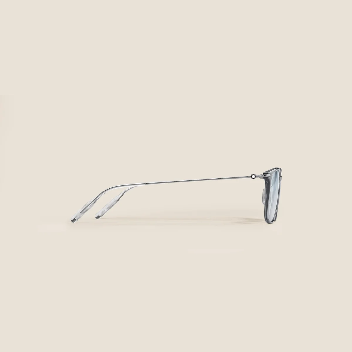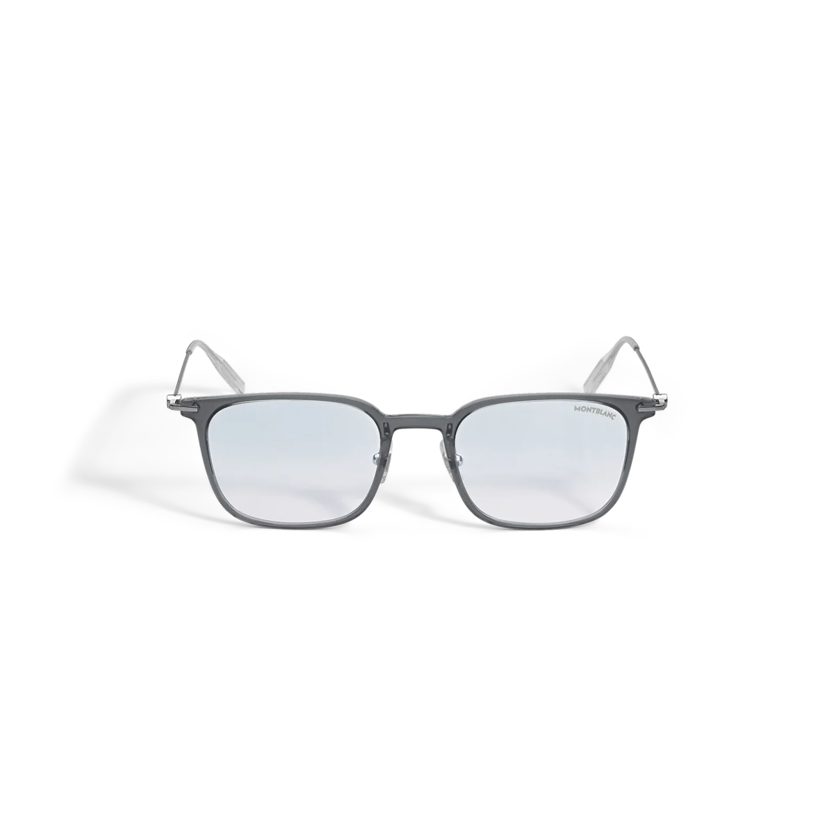 Acești ochelari de soare în stil pătrat au o ramă injectată de culoare gri și lentile fotocromatice, care ajustează gradul de întunecare al lentilelor în funcție de expunerea la lumina soarelui. Emblema Montblanc este încorporată în designul brațelor. Logo-ul Montblanc este gravat cu laser pe lentila stângă a ochelarilor de soare, iar modelul antiderapant este gravat cu laser pe partea interioară a vârfurilor brațelor pentru a spori confortul.