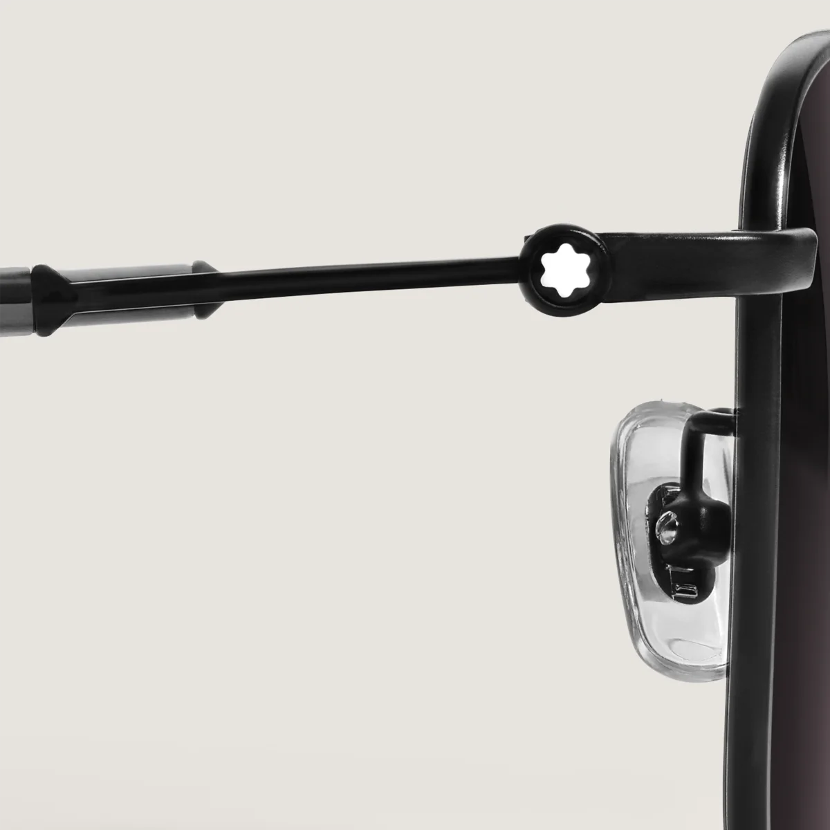 Acești ochelari de soare în stil pătrat au rama din metal de culoare neagră și lentile gri. Emblema Montblanc este încorporată în designul brațelor. Logo-ul Montblanc este gravat cu laser pe lentila stângă a ochelarilor de soare, iar modelul antiderapant este gravat cu laser pe partea interioară a vârfurilor brațelor pentru a spori confortul.