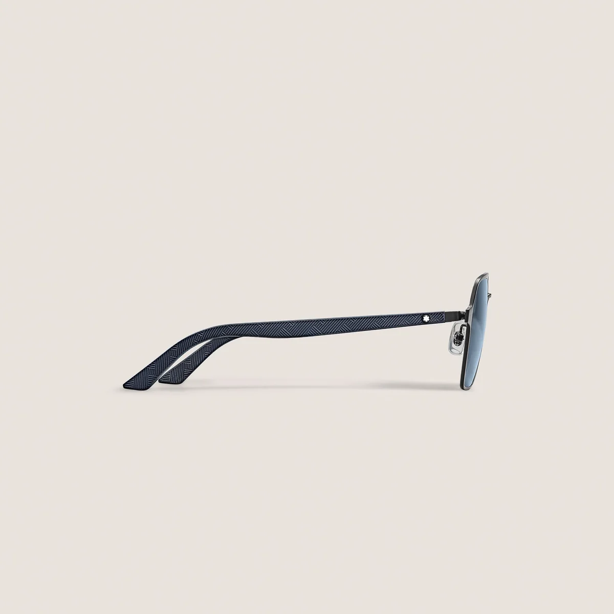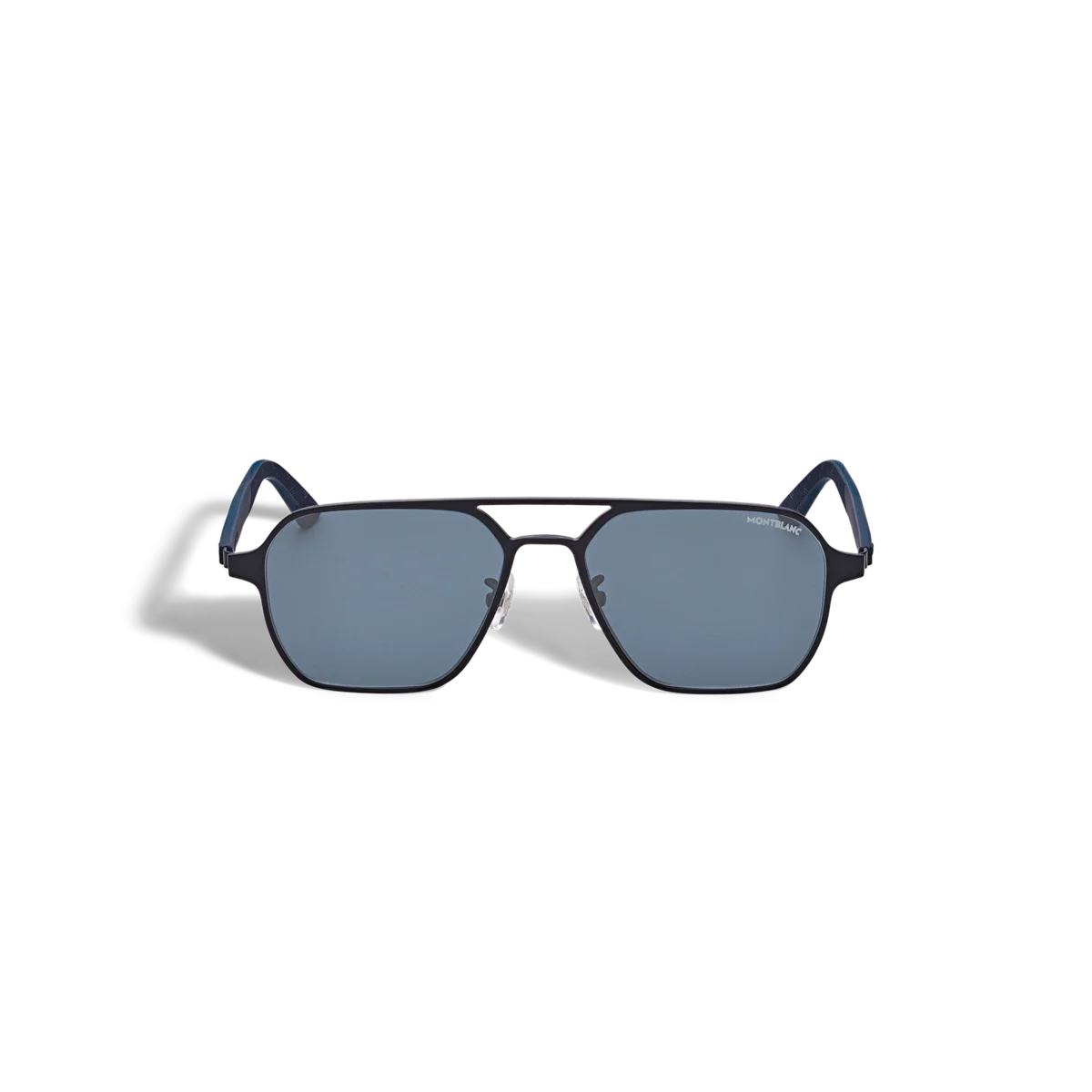 Acești ochelari de soare în stil pătrat au o ramă metalică neagră și lentile albastre. Au o punte metalică dublă în partea din față. Emblema Montblanc este încorporată în designul brațelor, iar capetele brațelor sunt prevăzute cu capete din cauciuc cu modelul Montblanc Extreme 3.0 pentru a conferi un aspect sportiv. Logo-ul Montblanc este gravat cu laser pe lentila stângă a ochelarilor de soare.