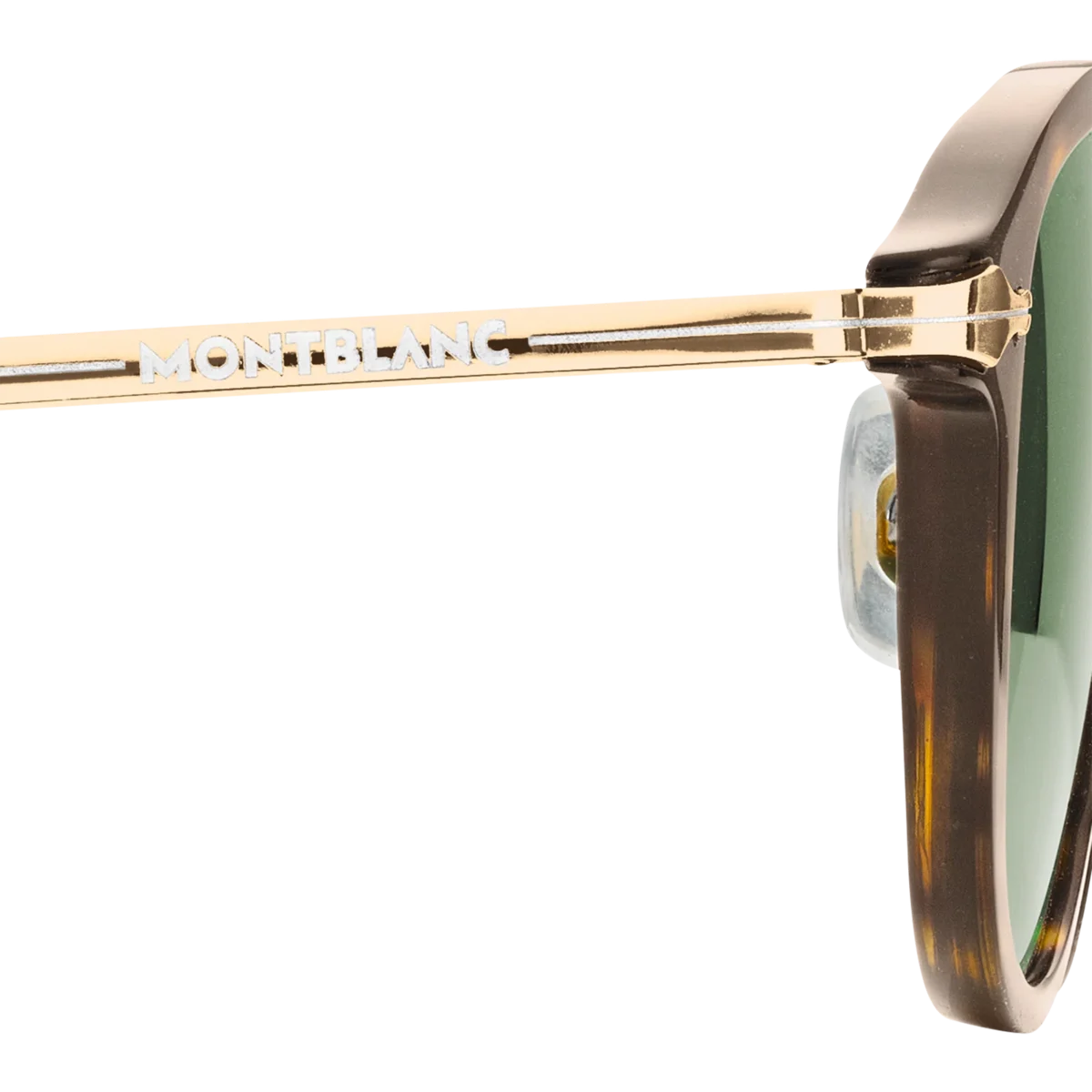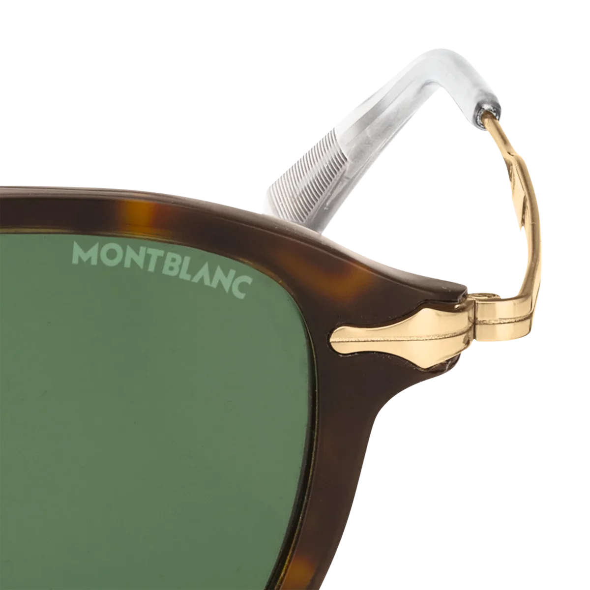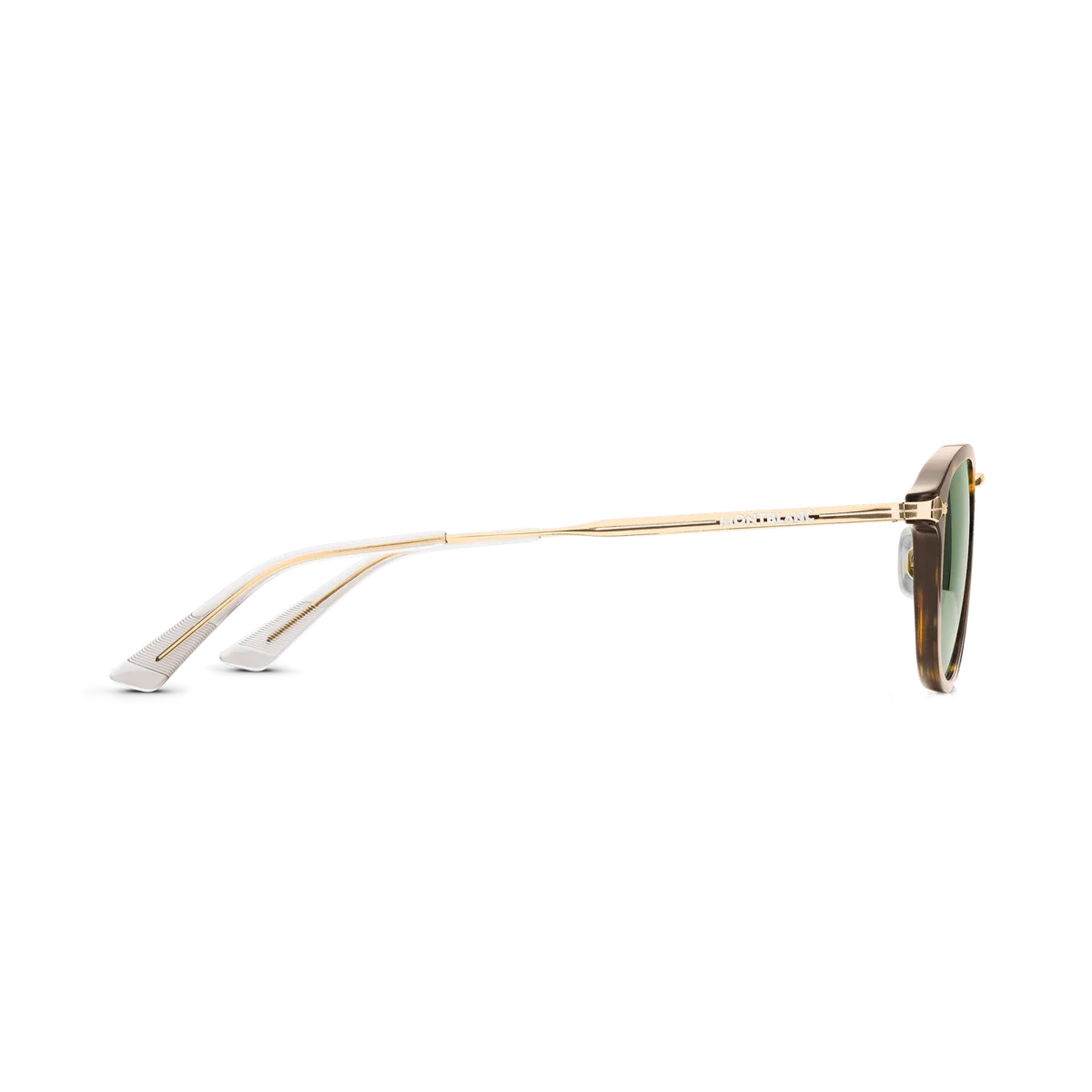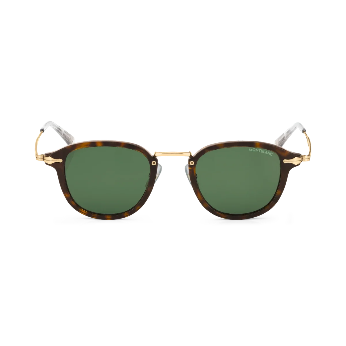 Acești ochelari de soare rotunzi au o ramă injectată de culoare Havana și lentile verzi. Inspirat de designul peniței instrumentelor de scris, un detaliu decorativ în formă de peniță este prezent pe designul metalic al brațelor. Logo-ul Montblanc este gravat cu laser pe lentila stângă, iar modelul antiderapant este gravat cu laser pe partea interioară a vârfurilor brațelor pentru a spori confortul.