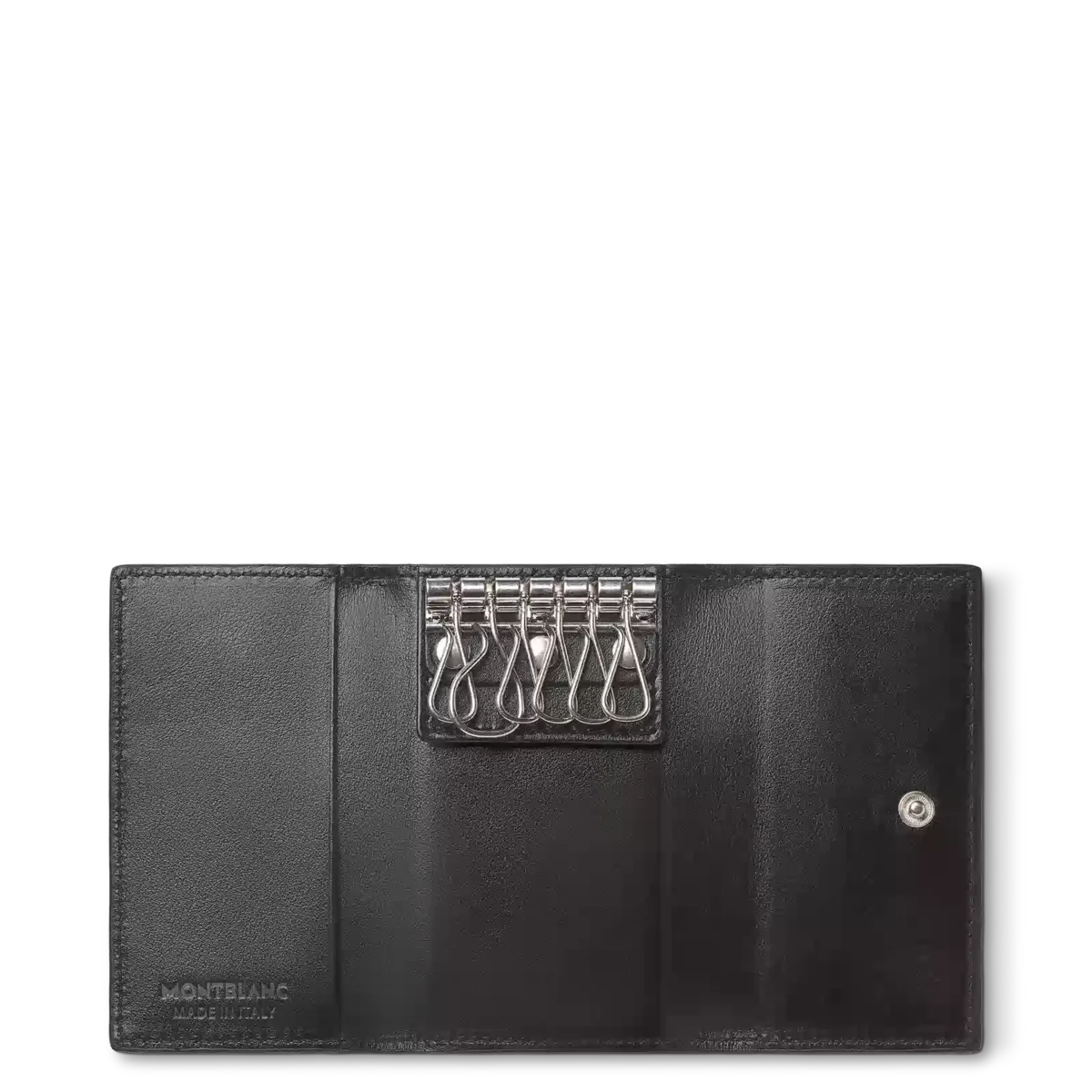 O modalitate elegantă de a vă organiza cheile, acest portchei Meisterstück este realizat manual din piele neagră netedă, cu o căptușeală luxoasă din țesătură. Elegant și spațios, portcheiul are inele pentru o cheie de mașină și cinci chei suplimentare, astfel încât să puteți păstra totul la un loc. Pentru un plus de eleganță, portcheiul este finisat cu emblema Montblanc.