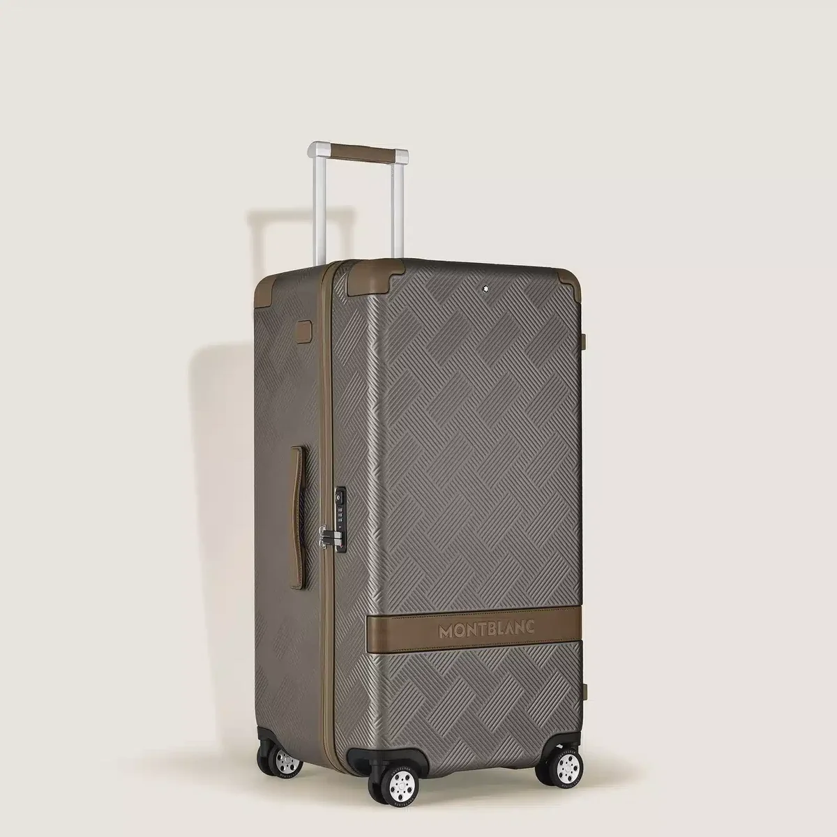 Descoperă seria de troleruri #MY4810 și cea mai recentă adăugire: o valiză de mare capacitate într-o formă nouă, realizată din policarbonat ușor de culoare argintie, imprimată cu un motiv Extreme 3.0 mărit pentru un aspect distinctiv și accentuată cu finisaje elegante din piele neagră. Glisează fără efort cu 4 roți silențioase cu rulmenți, extensii stabile cu lungimi multiple și sistem multi-stop și mânere confortabile din piele. În interior, bucură-te de un compartiment spațios pentru haine, cu curea reglabilă pe o parte și plasă neagră pe cealaltă parte, închidere cu fermoar și buzunar pentru cărți de vizită. Personalizează-ți trolerul cu o etichetă pentru bagaje și o etichetă de personalizare în culoarea noisette.