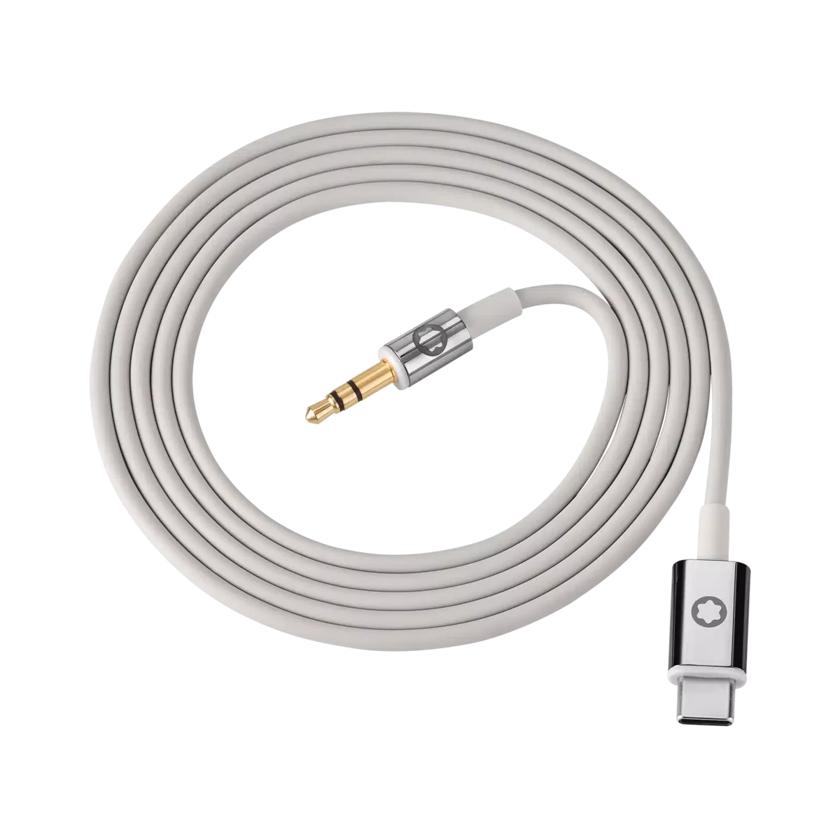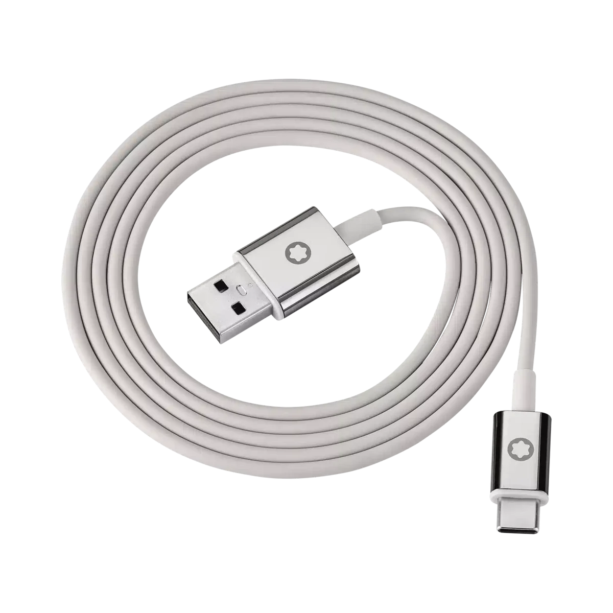 Set de cabluri suplimentar pentru căștile Montblanc MB 01, conținând un cablu de încărcare USB-C gri și un cablu audio gri.