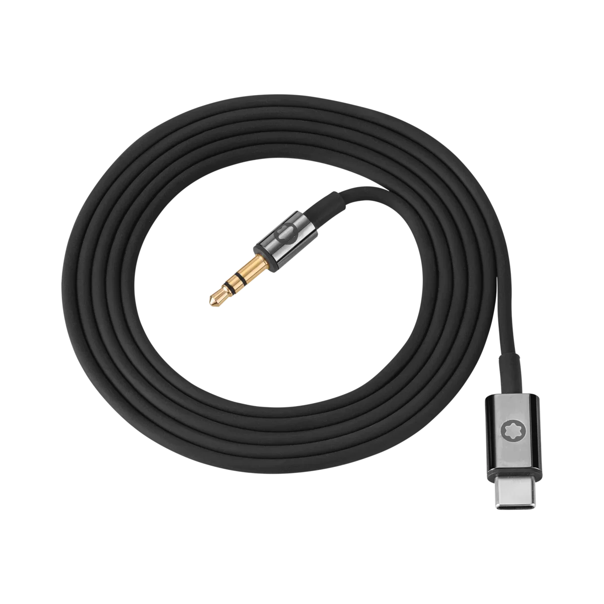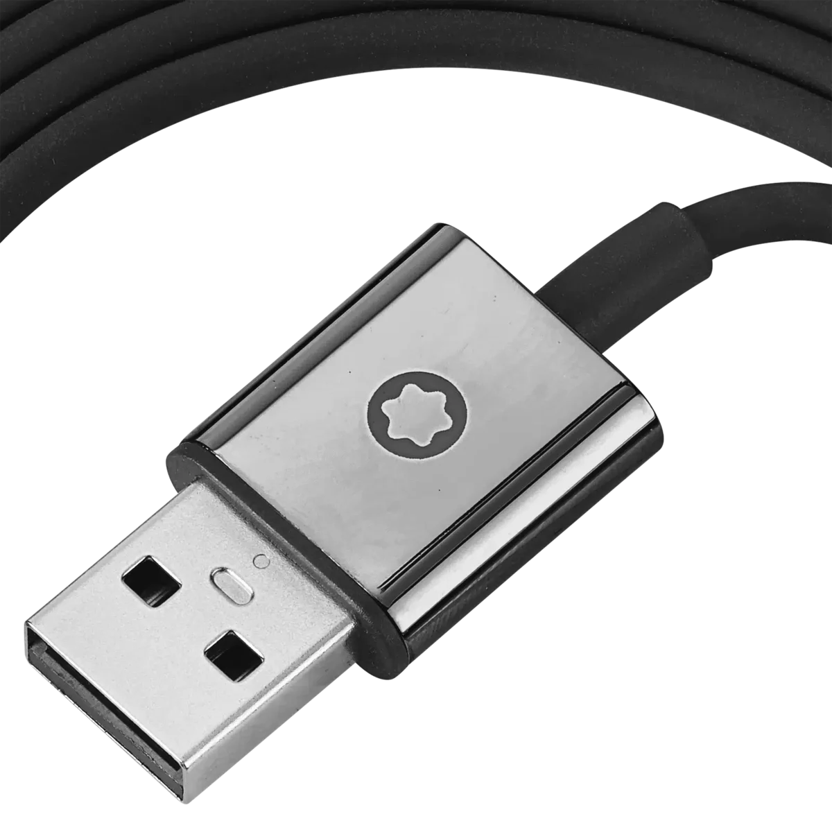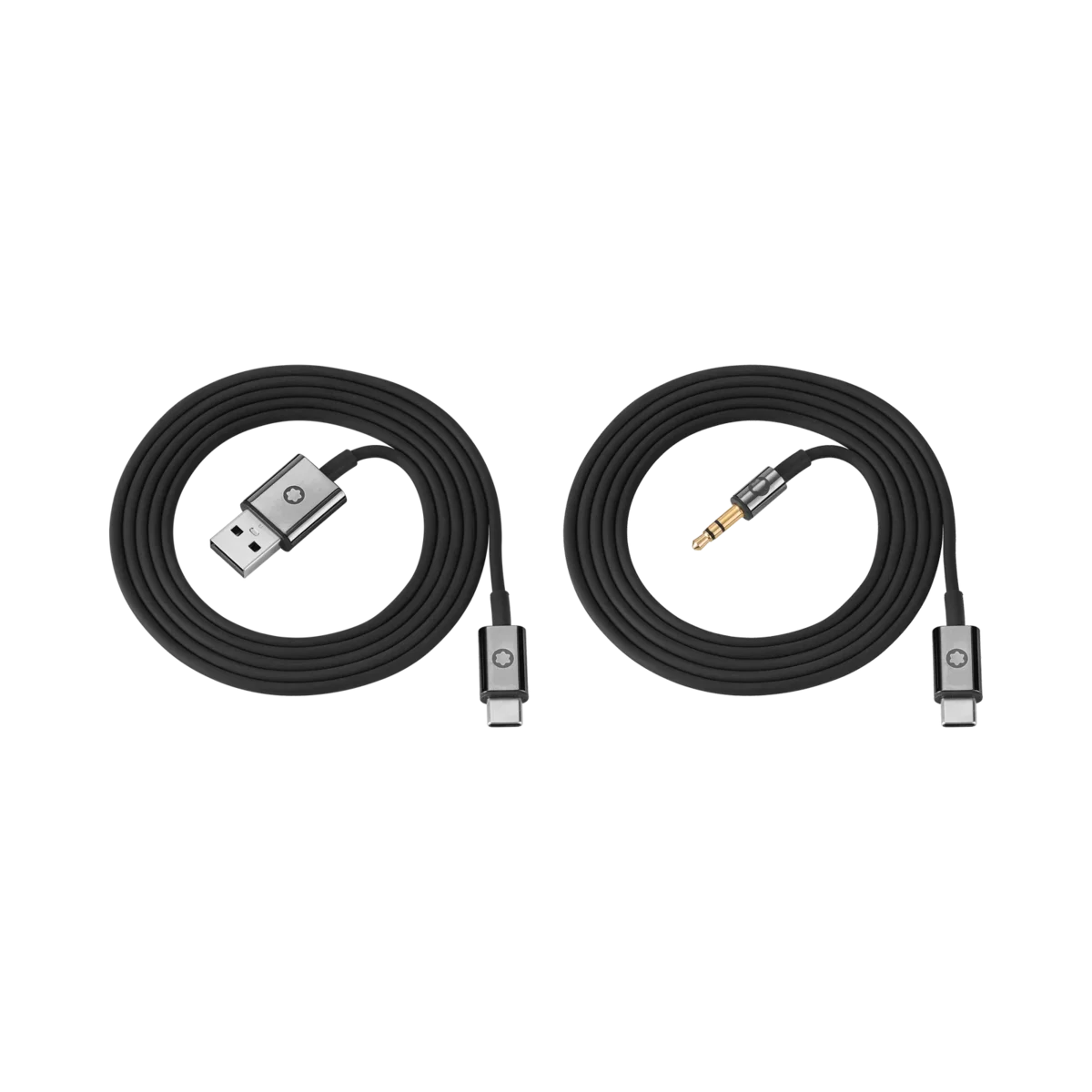 Set de cabluri suplimentare pentru căștile Montblanc MB 01, conținând un cablu de încărcare USB-C negru și un cablu audio negru.