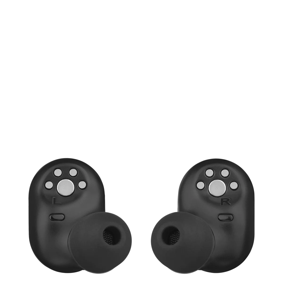 Carcasă de încărcare cu căști intraauriculare, cablu de încărcare USB-C, set de dopuri din silicon pentru urechi (XS, S, M, L), manual de siguranță și ghid de pornire rapidă