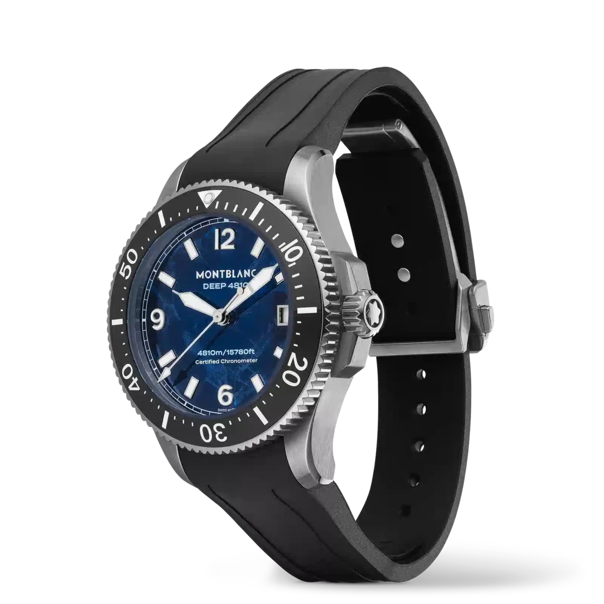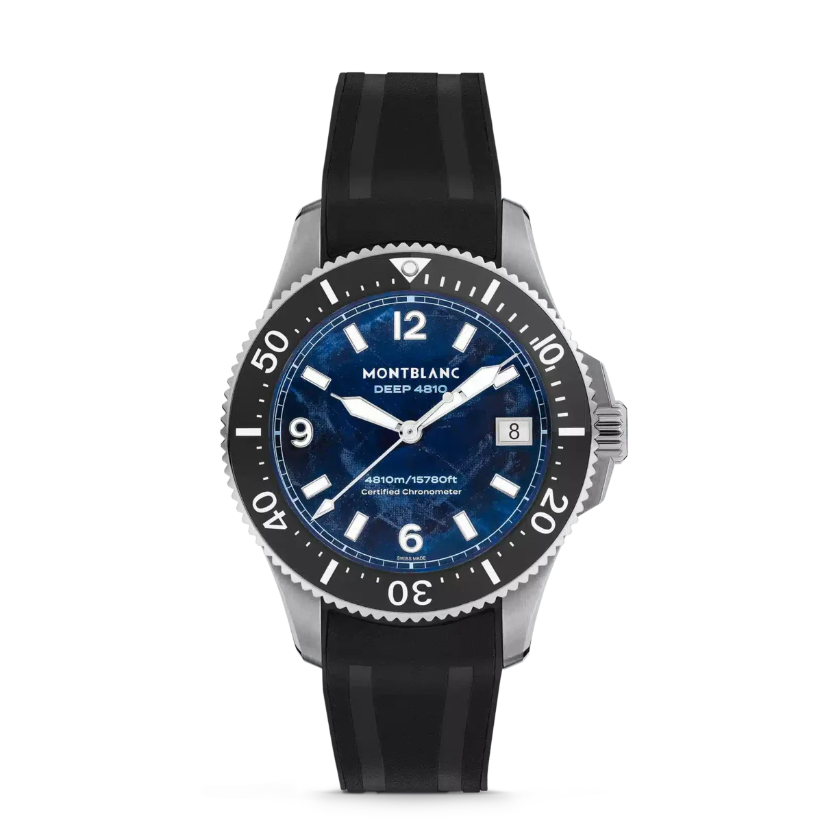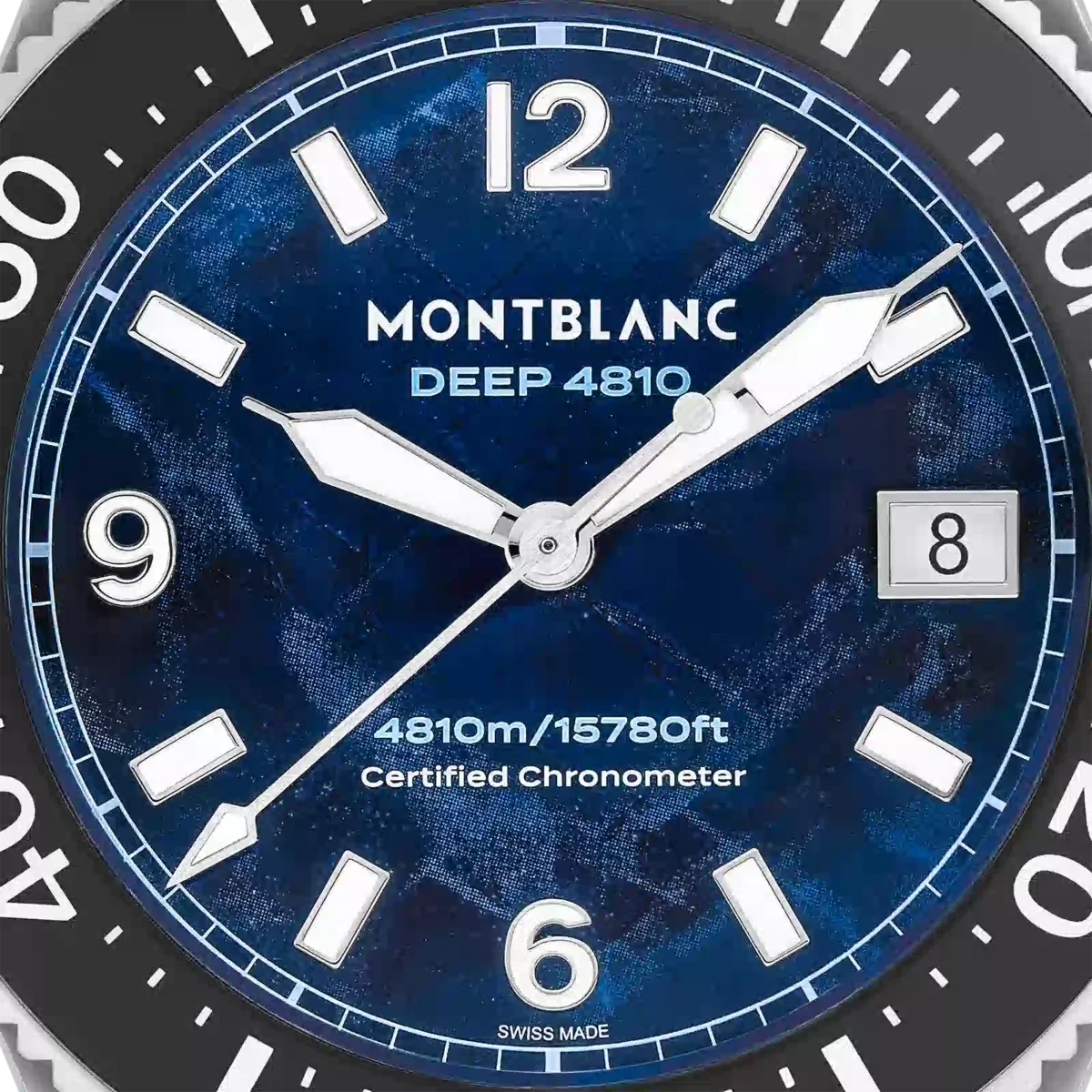 După ce a încercat să atingă cele mai înalte culmi, Montblanc explorează universul marin la 4810 metri sub nivelul mării cu Montblanc Iced Sea 0 Oxygen Deep 4810. Cadranul cu model de ghețar este inspirat de Mer de Glace – Marea de Gheață – principalul ghețar al masivului Mont-Blanc. Textura sa a fost obținută folosind o tehnică ancestrală aproape uitată, numită gratté-boisé. Încorporat într-o carcasă din titan de 43 mm, complet lipsită de oxigen, cu un scut care protejează coroana înșurubată, acest ceas de scufundare are un fond decorat cu o gravură 3D a peisajului pe care îl văd scafandrii când se scufundă sub gheață. Ceasul este alimentat de mișcarea automată MB 29.29 certificată COSC, produsă de Montblanc, cu o rezervă de energie de aproximativ cinci zile și conformă cu norma ISO 6425 pentru scufundări. Este rezistent la apă până la 4810 metri. Nr. de identificare: MB133268