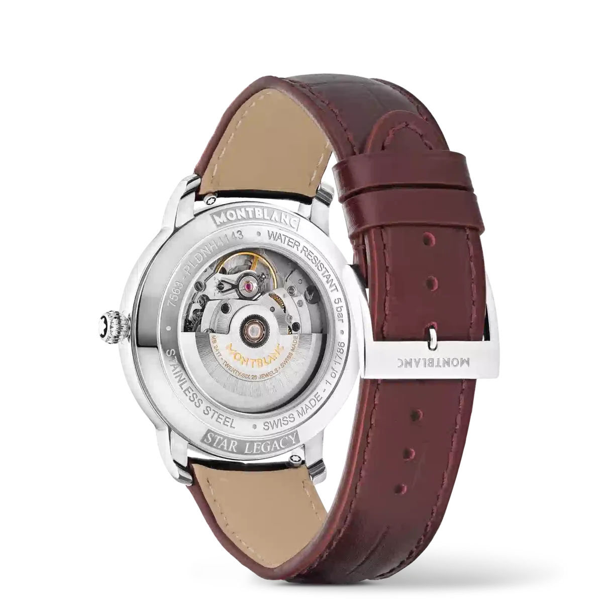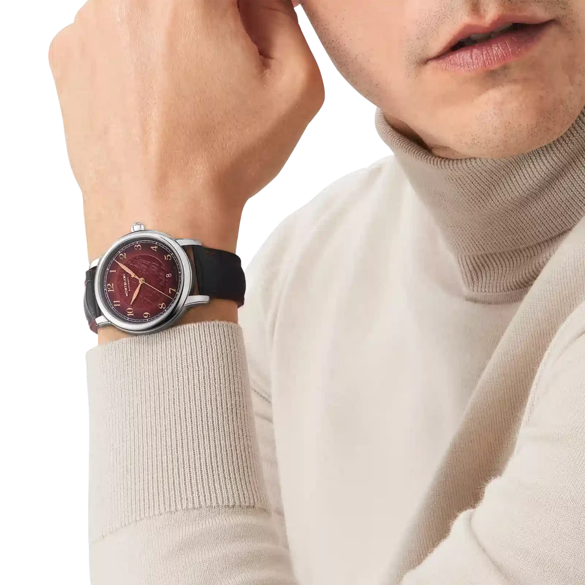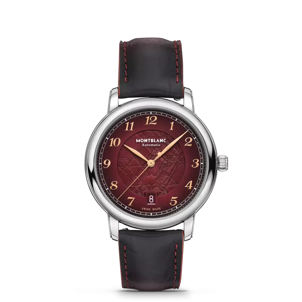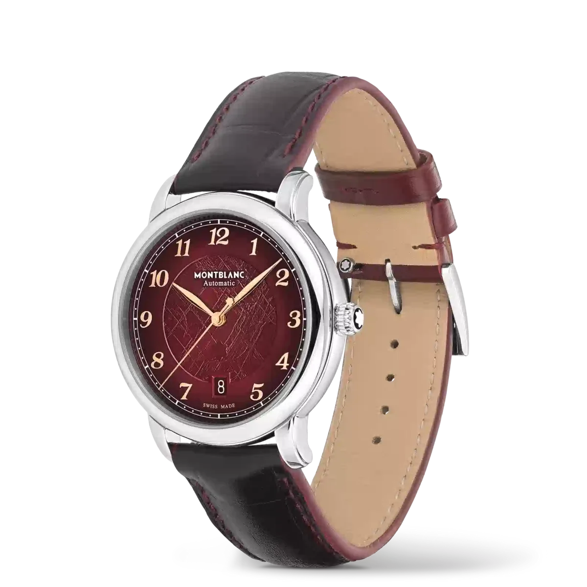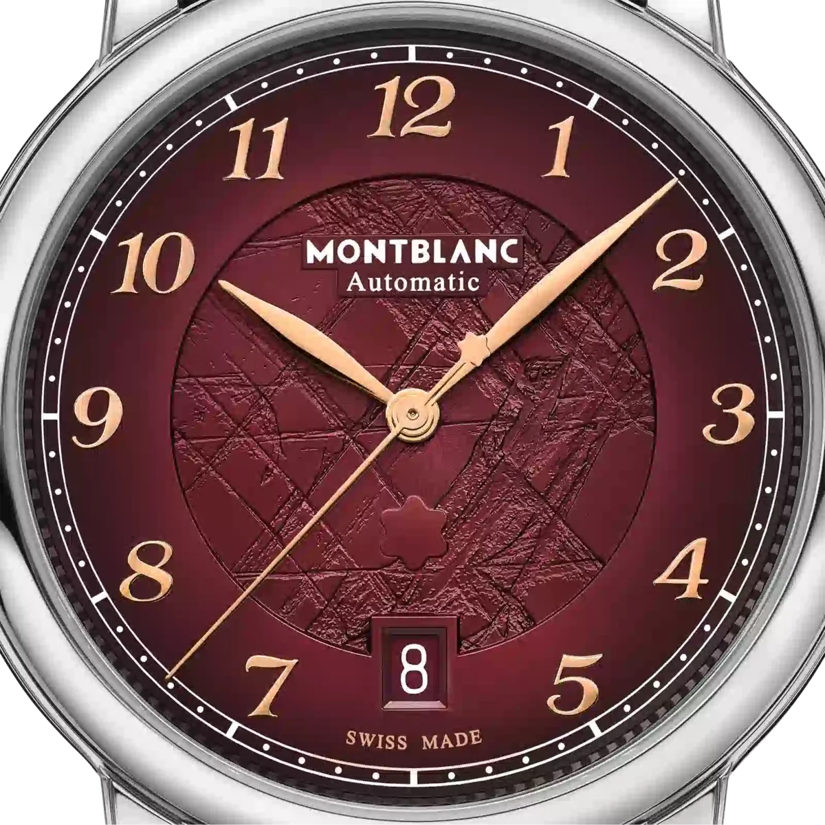 Ediția limitată Montblanc Star Legacy Automatic Date, în număr de 1786 de exemplare, aduce un omagiu curajosului Jacques Balmat, primul om care a ajuns pe vârful Mont Blanc în 1786. Ceasul prezintă un cadran în nuanțe de burgund cu model de ghețar și efect sfumato în jurul marginii, filet sauté, ace și cifre placate cu aur roz și emblema Montblanc pe contragreutatea secundei. Acest model este alimentat de mișcarea automată MB 24.17 și indică orele, minutele, secundele și data. Ceasul este încorporat într-o carcasă din oțel inoxidabil de 39 mm, cu fundul deschis pentru a permite vizualizarea mecanismului, și este prevăzut cu o curea interschimbabilă din piele de vițel cu imprimeu aligator și sfumato vertical.