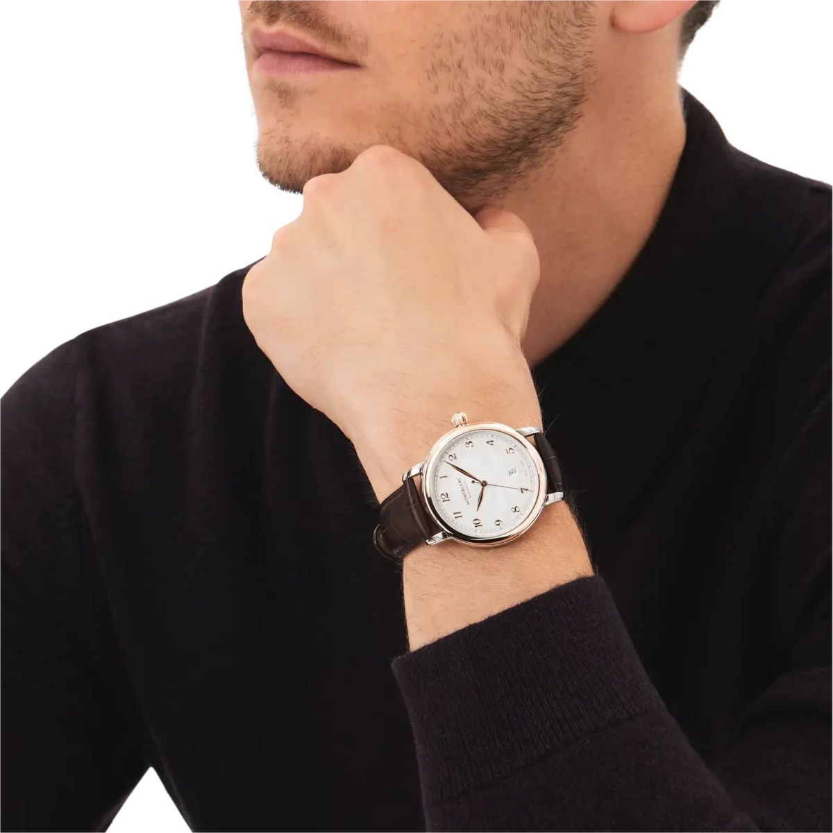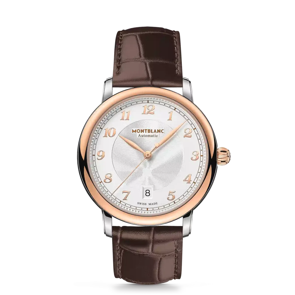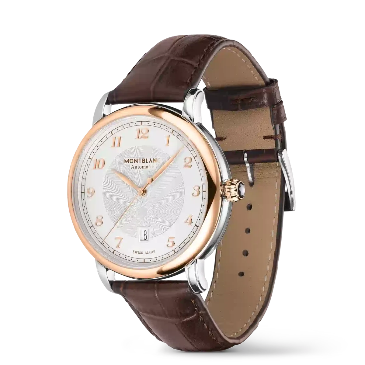 Colecția Montblanc Star Legacy se inspiră din moștenirea Minerva și din ceasurile de buzunar ale companiei fabricate la sfârșitul secolului al XIX-lea și începutul secolului al XX-lea. În conformitate cu codurile de design ale liniei de produse, Montblanc Star Legacy Automatic Date are un cadran rafinat de culoare alb-argintiu, cu modelul guilloché Montblanc exploding star, cifre arabe, ace în formă de frunză, un motiv guilloché „filet sauté” și o cale ferată. Ceasul este echipat cu calibrul automat MB 24.17 și prezintă orele, minutele și secundele în centru și data într-o fereastră la ora șase. Este disponibil într-o carcasă din oțel inoxidabil de 42 mm cu ramă din aur roz 750/1000 (18 karate) și este prevăzut cu o curea din piele de vițel maro cu imprimeu aligator.