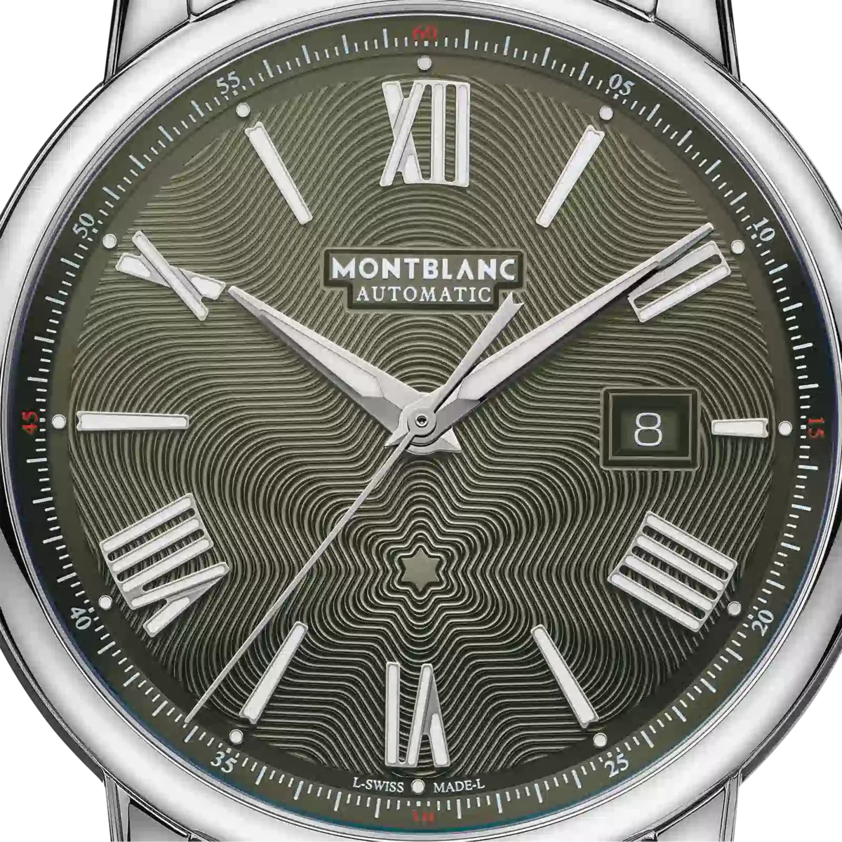 Montblanc Star Legacy Automatic Date Limited Edition, în ediție limitată de 800 de bucăți, este decorat cu un cadran verde cu modelul caracteristic Montblanc în formă de stea explozivă și cu ace și cifre în formă de sabie acoperite cu rodiu. Este alimentat de mișcarea automată MB 24.17 care indică orele, minutele, secundele și data. În ceea ce privește designul, ceasul a fost inspirat de ceasurile de buzunar Minerva de la sfârșitul secolului al XIX-lea și începutul secolului al XX-lea, cu carcasele lor rotunde, lustruite, în formă de pietricică și coroane în formă de ceapă. Ceasul este, de asemenea, prevăzut cu o brățară interschimbabilă din oțel inoxidabil.