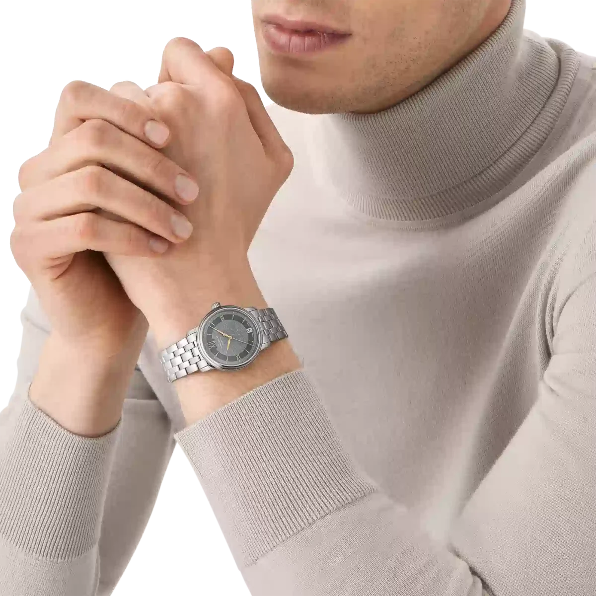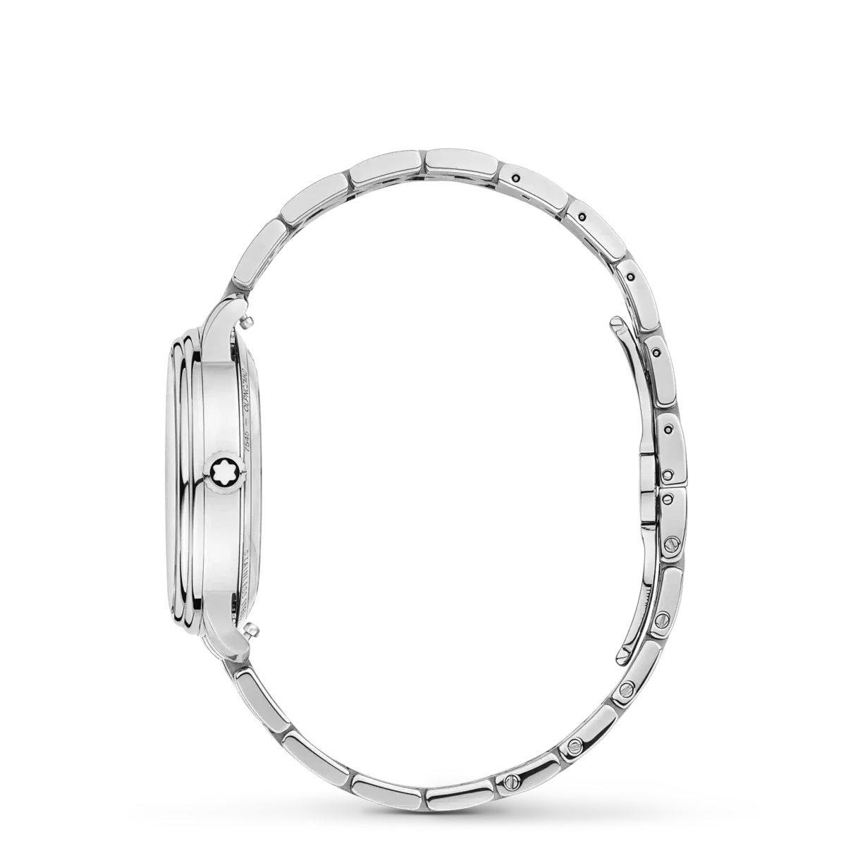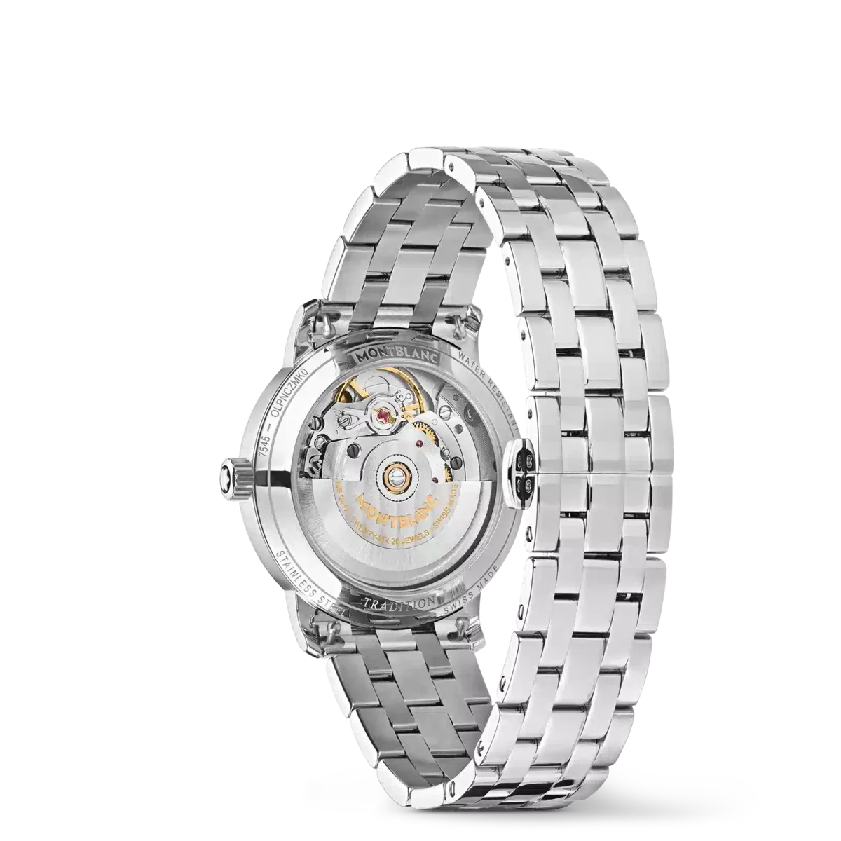 Montblanc Tradition Automatic Date are o carcasă din oțel inoxidabil de 32 mm cu corniere drepte și o lunetă dublă. Ceasul are un cadran gri care redă topografia Mont Blanc, cu cifre romane de culoare auriu roz și un „XII” roman proeminent. Acele orelor și minutelor în formă de sabie, acul secundelor și coroana cu emblema Montblanc, precum și brățara din oțel inoxidabil interschimbabilă completează aspectul său contemporan și elegant.