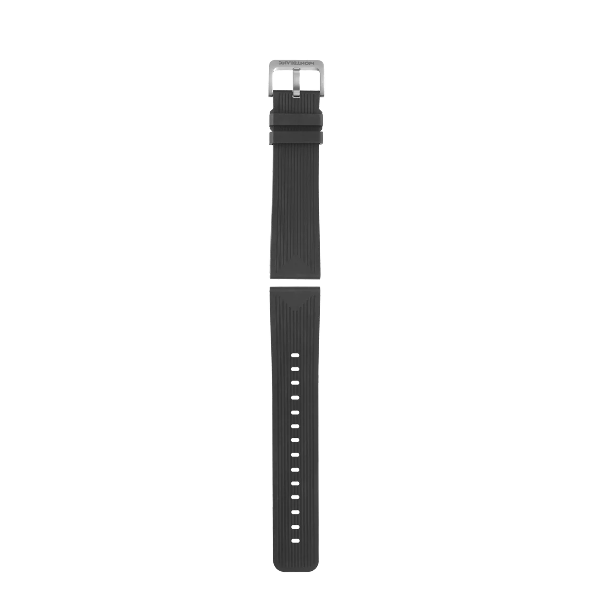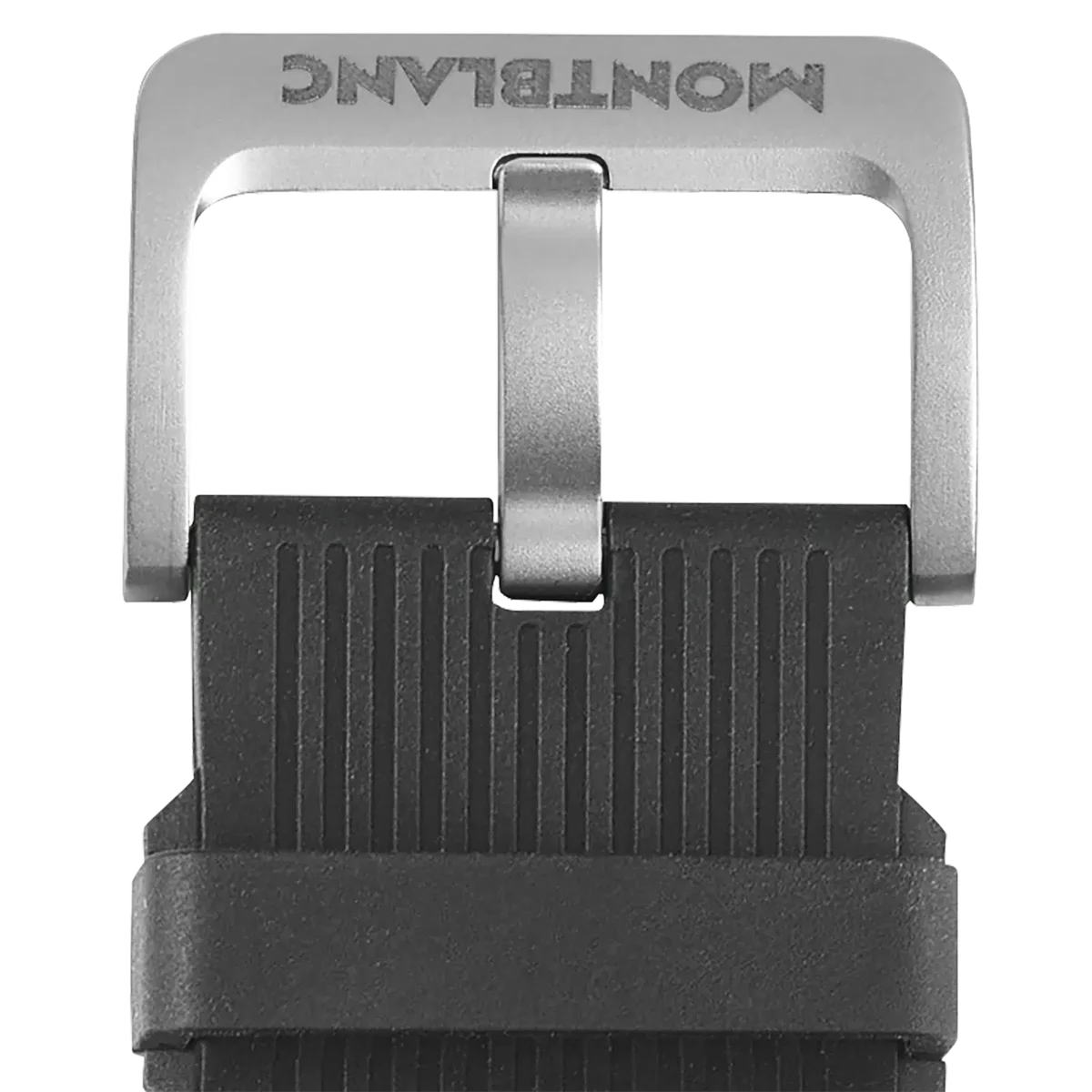 Curea din cauciuc negru de 22 mm cu cataramă reglabilă din oțel inoxidabil. Compatibilă cu toate ceasurile inteligente Montblanc Summit.