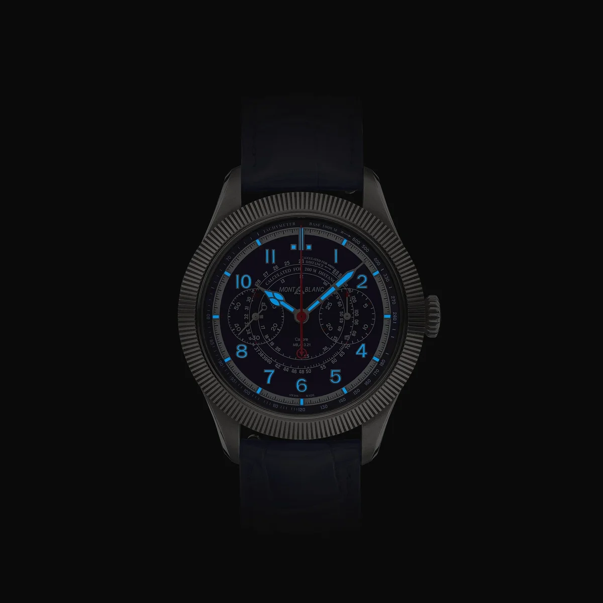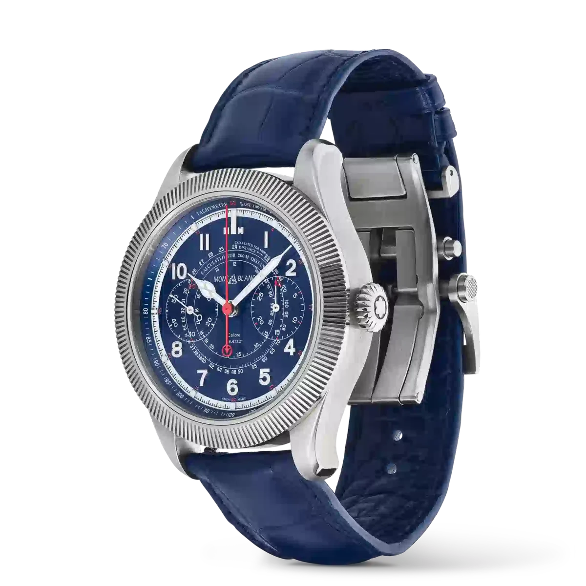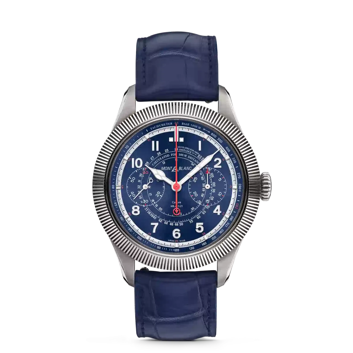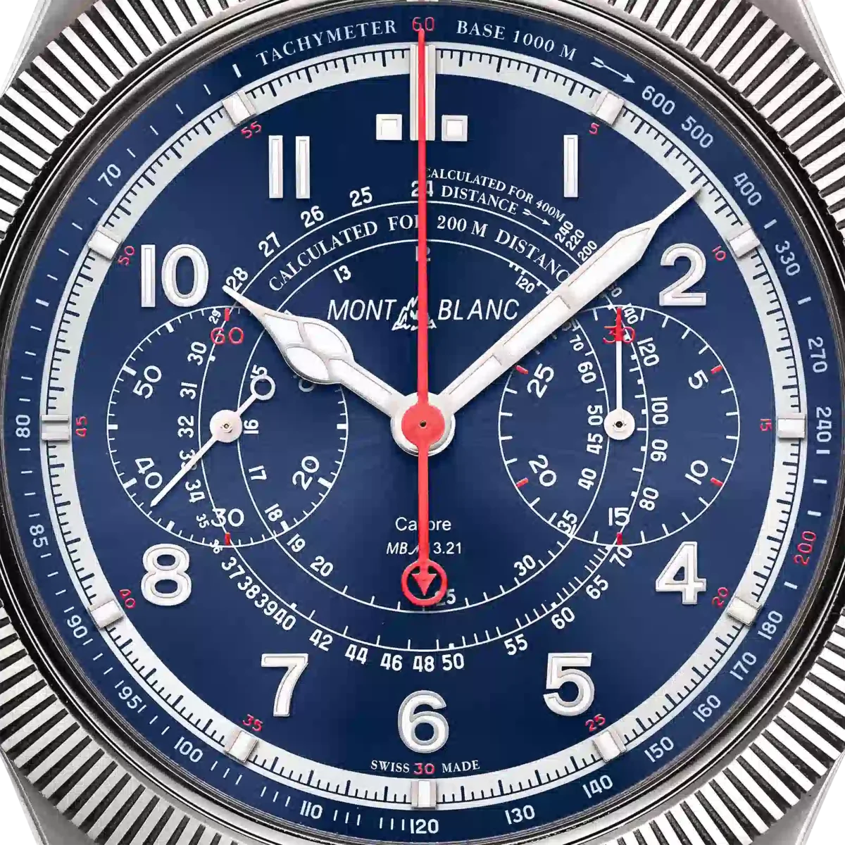 Montblanc 1858 Unveiled Timekeeper Minerva Limited Edition introduce o funcție cronograf complet nouă. În loc să utilizeze butoane tradiționale, cronograful este activat prin intermediul lunetei canelate. O singură apăsare a lunetei canelate din aur alb 750/1000 (18 karate) va porni cronograful. O a doua apăsare îl oprește, iar o a treia apăsare îl resetează, transformând cronograful așa cum îl cunoaștem. Ceasul are o carcasă din oțel inoxidabil de 42,5 mm și este dotat cu un cadran albastru și o curea albastră din piele de aligator, care poate fi schimbată. Este alimentat de calibrul MB M13.21 cu înfășurare manuală și finisat manual și este limitat la 100 de bucăți, în referință la aniversarea de 100 de ani a calibrului 13.20, care a fost strămoșul acestui mecanism.