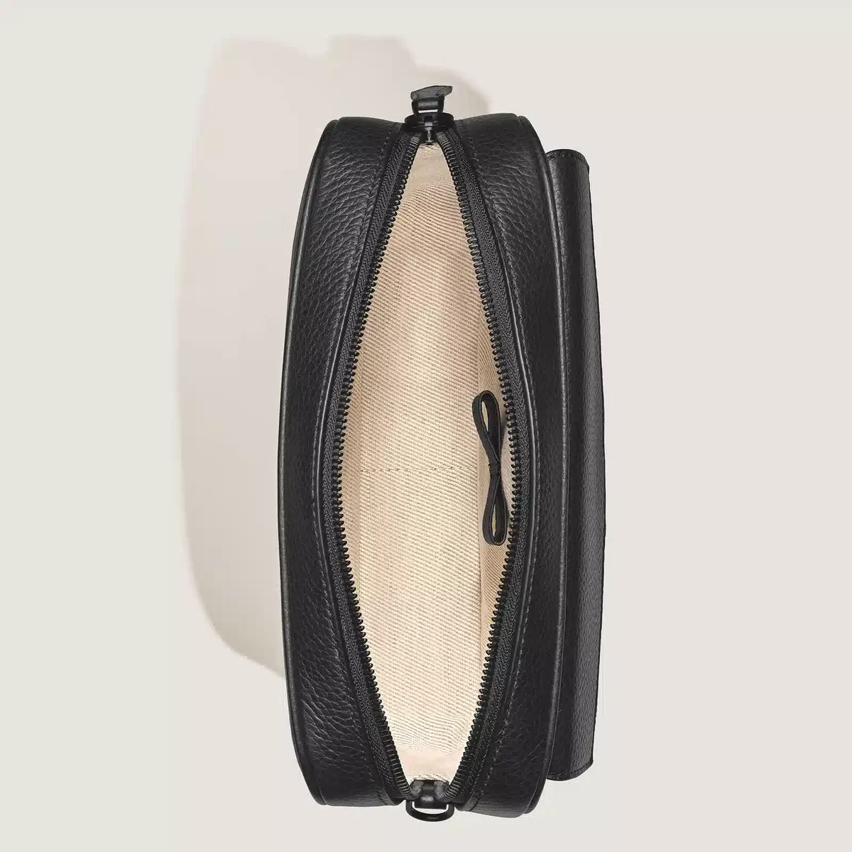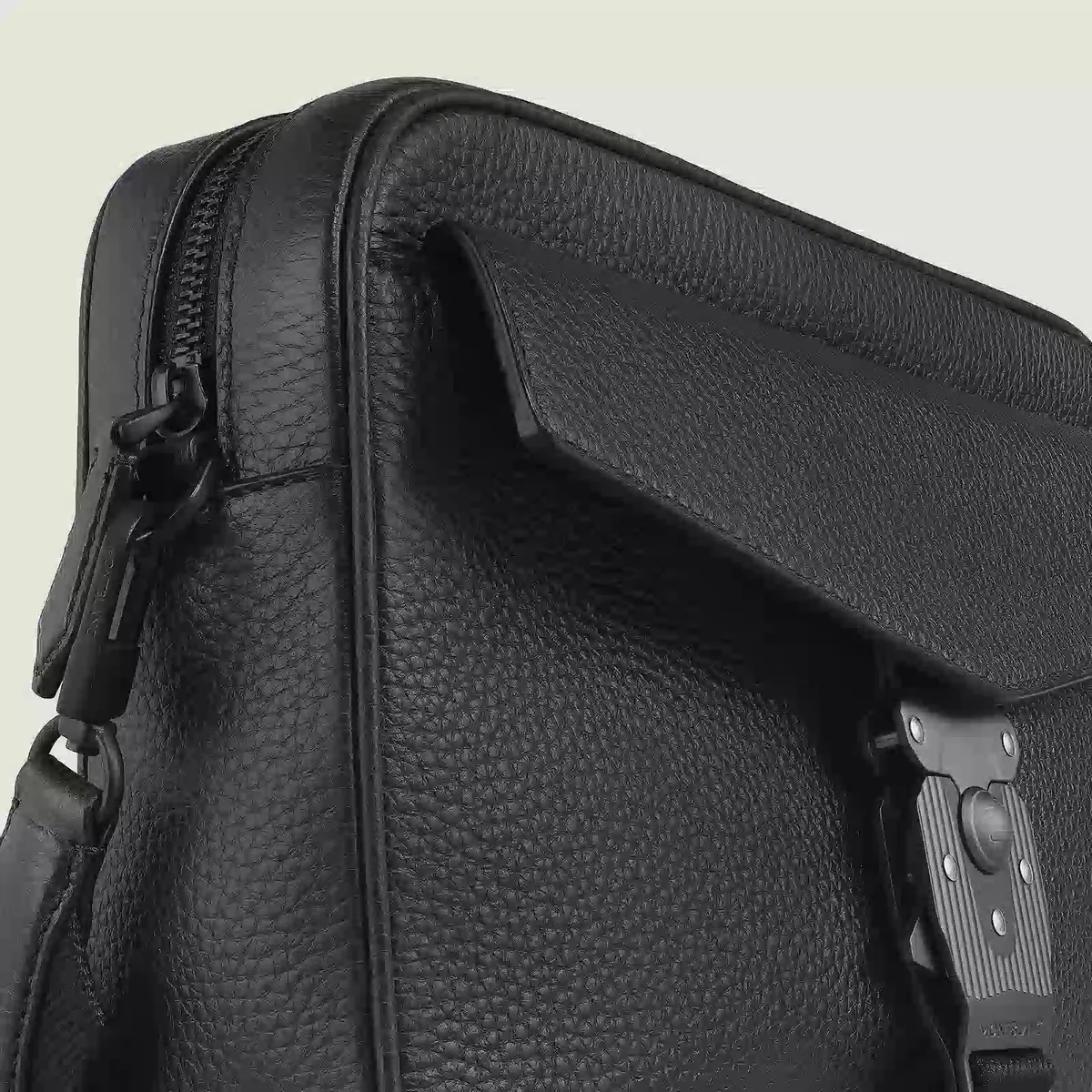 Descoperă elegantul rucsac, confecționat din piele neagră texturată, dar moale, și prevăzut cu închizătoare sigură M LOCK 4810 în partea din față. Designul său include un compartiment principal spațios, un buzunar frontal ușor accesibil sub clapă și un buzunar interior deschis pentru a-ți păstra obiectele organizate. Pentru o notă personală, încuietoarea frontală poate fi personalizată pentru a face geanta unică. Cureaua de umăr reglabilă și detașabilă asigură un transport confortabil și versatil, cu un stil fără efort.
