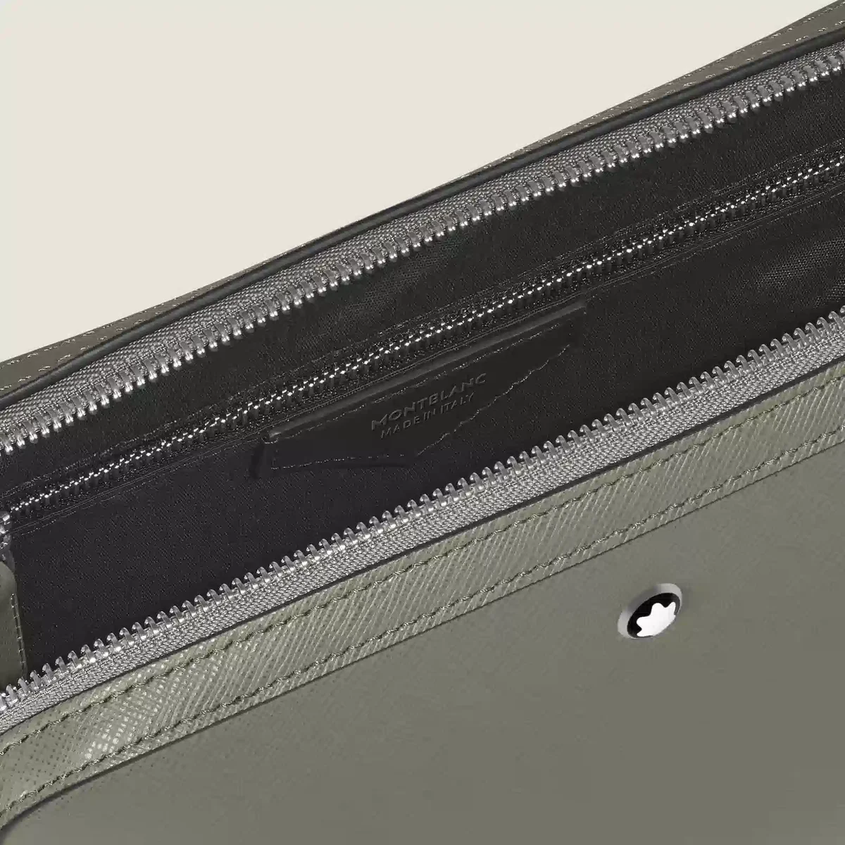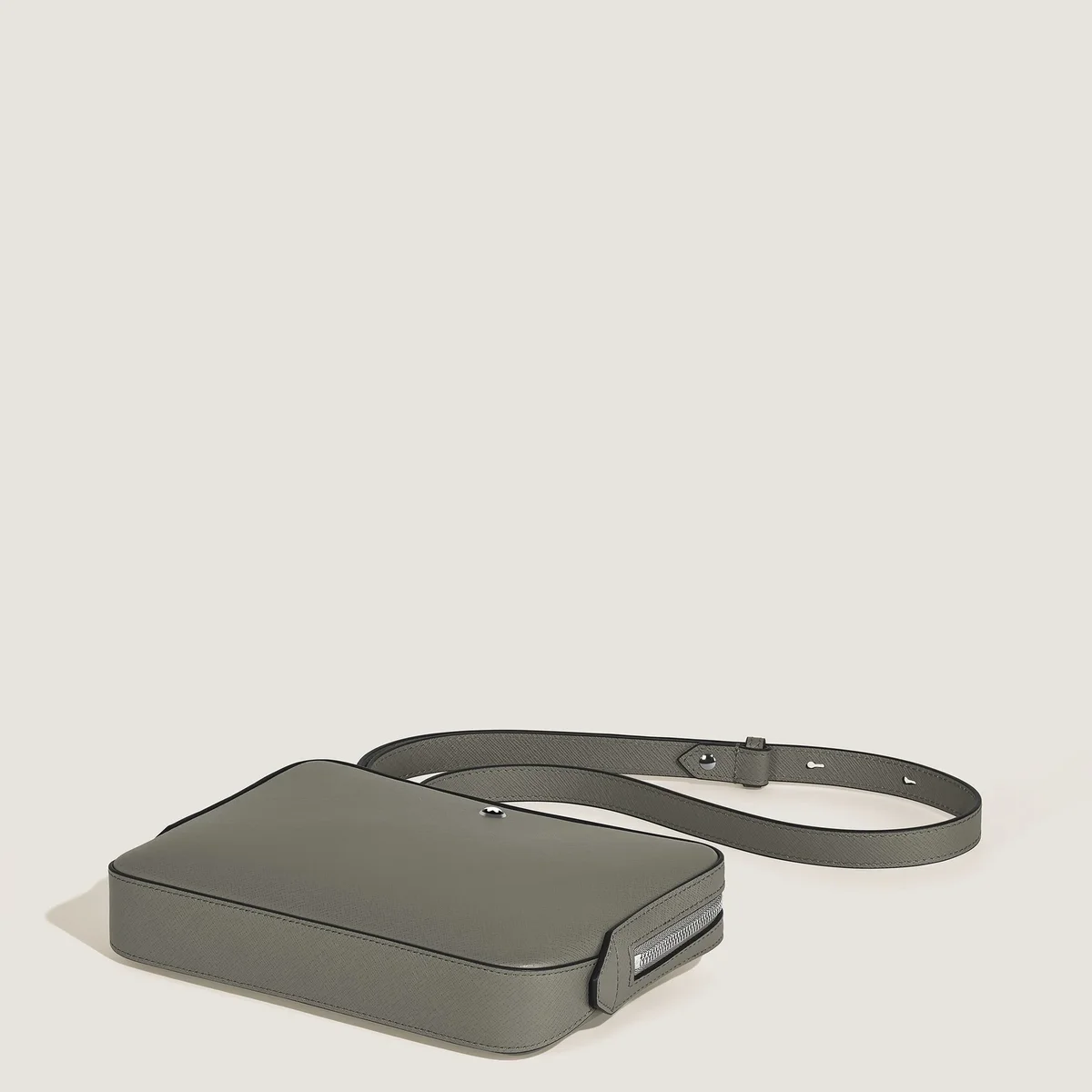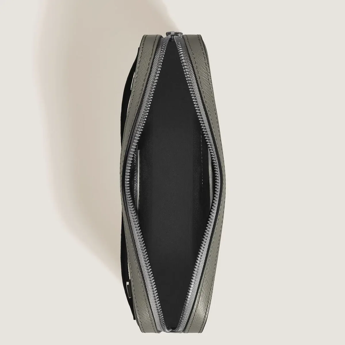 Inspirată din lumea scrisului, această geantă compactă poate fi purtată în mână sau pe umăr, folosind cureaua detașabilă și reglabilă. Confecționată din piele imprimată Saffiano, culoarea sa elegantă gri mediu adaugă o notă de rafinament, în timp ce interiorul spațios și buzunarul intern deschis oferă spațiu pentru obiectele esențiale pentru o zi sau o seară în oraș. Pentru o funcționalitate și mai mare, atașați accesoriul la genți mai mari folosind banda de piele din spate.