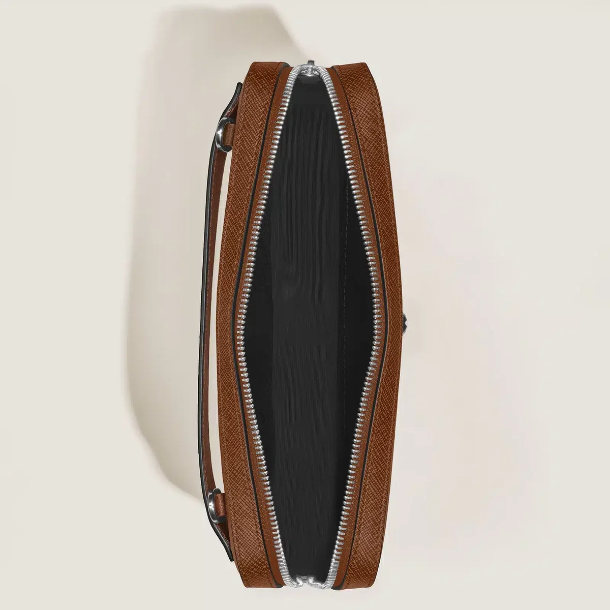 Inspirat din lumea scrisului, acest mini crossbody este confecționat din piele Sartorial embosată, într-o culoare rafinată fauve. Conceput pentru versatilitate, poate fi purtat în mână sau pe umăr, folosind cureaua detașabilă și reglabilă. Pentru o funcționalitate sporită, este prevăzută cu o bandă din piele pe spate, care permite atașarea la genți mai mari.