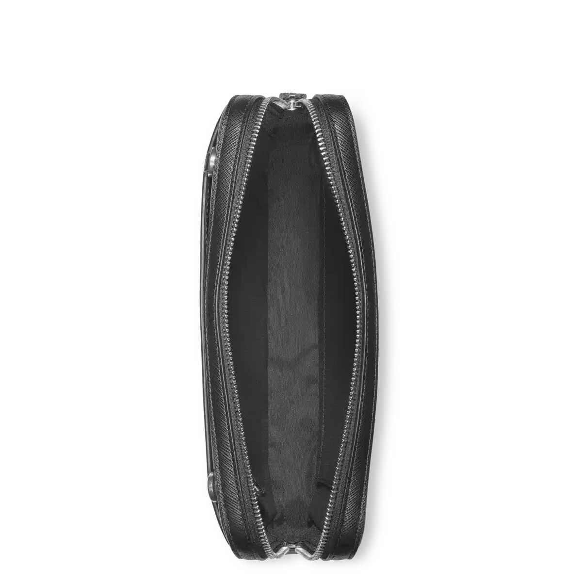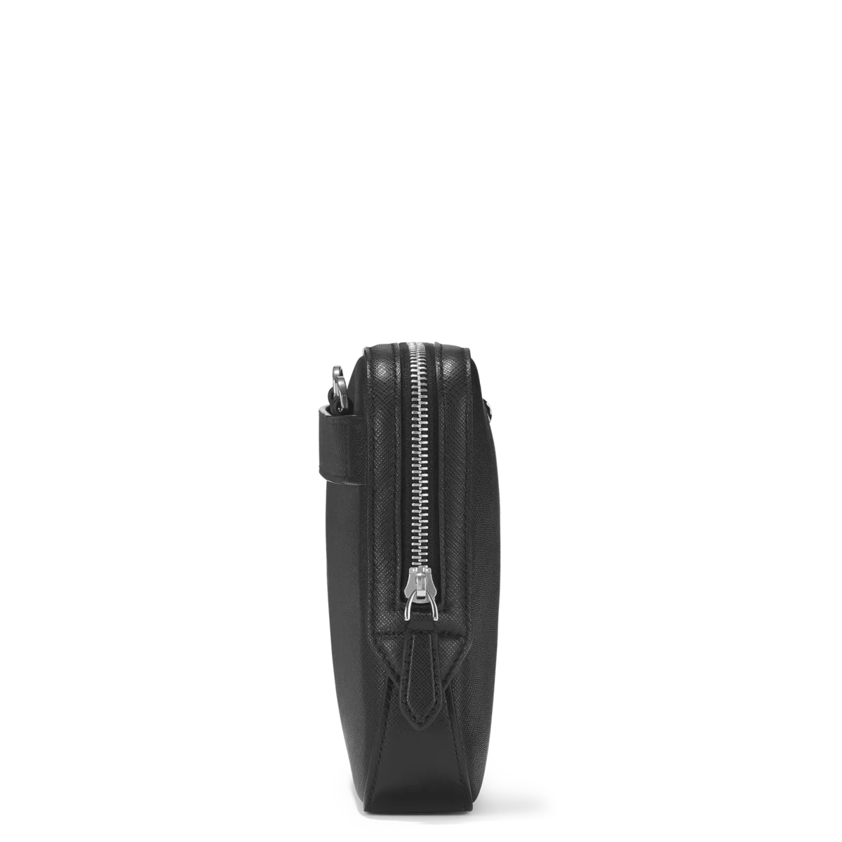 Inspirată din lumea scrisului, această geantă compactă poate fi purtată în mână sau pe umăr, folosind cureaua detașabilă și reglabilă. Pentru o funcționalitate sporită, atașați accesoriul la genți mai mari folosind banda de piele din spate.