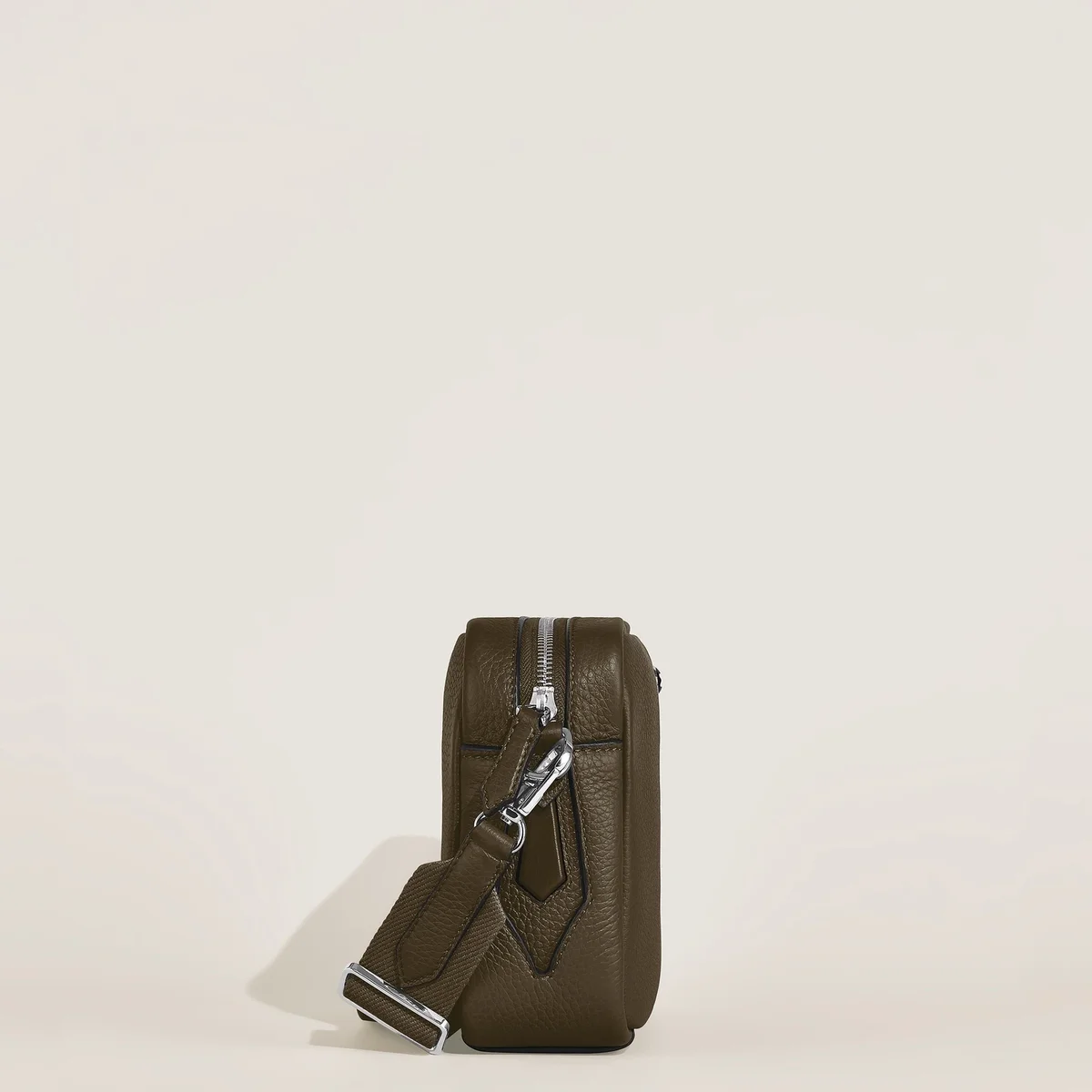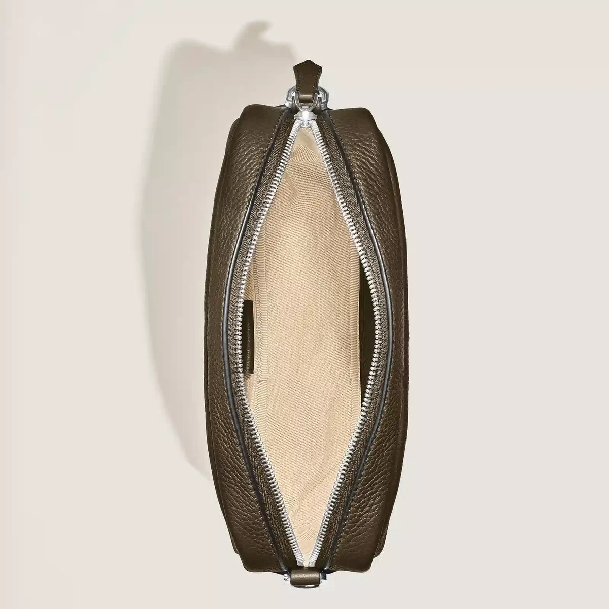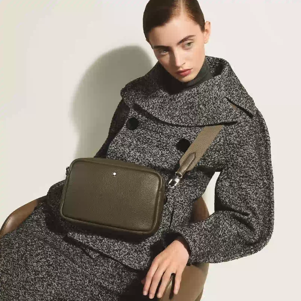 Confecționată din piele de vițel moale, de culoare kaki, această geantă mică, purtată pe umăr, are o siluetă dreptunghiulară, pusă în valoare de detaliile din piele Meisterstück, inclusiv un fermoar îndrăzneț în formă de peniță și cusături rafinate, care amintesc de urmele lăsate de un stilou. Concepută pentru a fi practică, geanta are un compartiment principal cu un buzunar deschis și două bucle pentru instrumente de scris, iar cureaua de umăr detașabilă și reglabilă oferă opțiuni versatile de transport, cu un stil lejer.