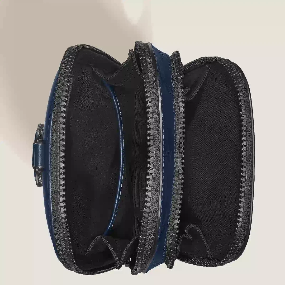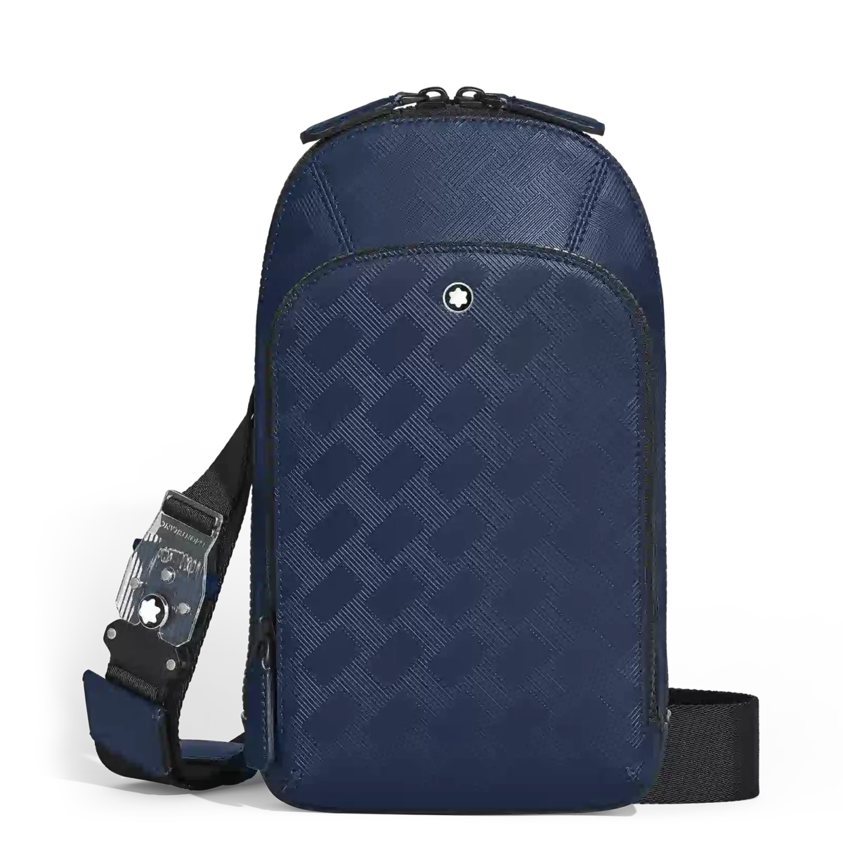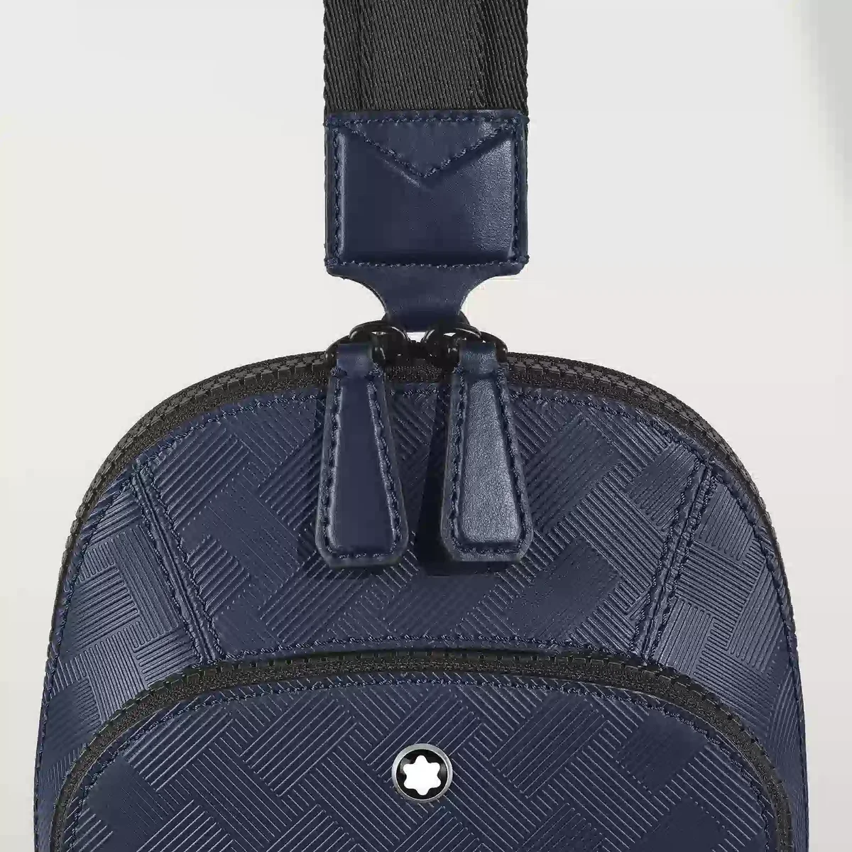 Versatilă și elegantă, geanta cu două compartimente Extreme 3.0 combină pielea albastră închisă, embosată, cu finisaje metalice negre și o curea de umăr cu catarama distinctivă M LOCK 4810. Îmbinând comoditatea și stilul, este companionul de nădejde al tinerilor exploratori urbani.