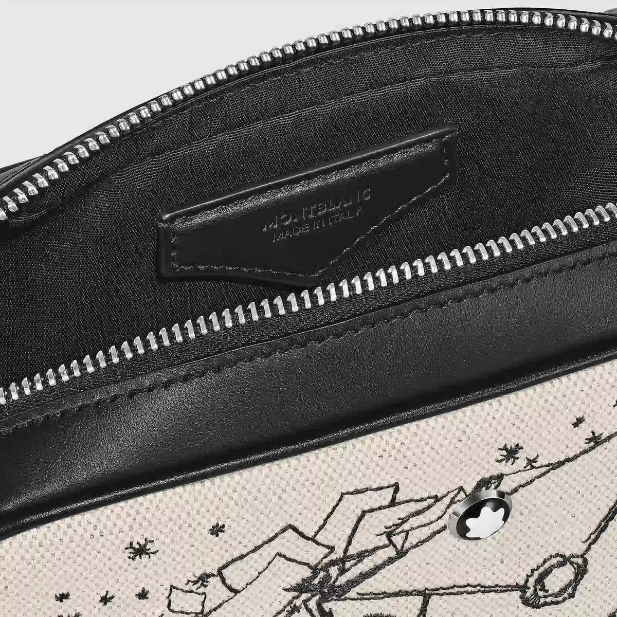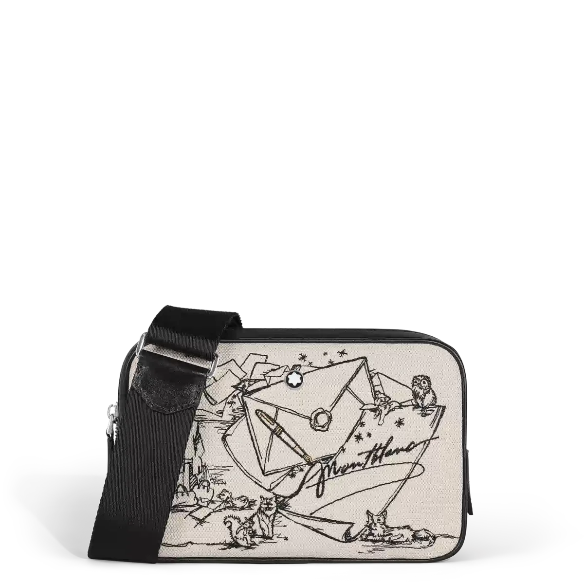 Mini crossbody Happy Holidays din acest an este un companion fermecător pentru aventurile festive. Cu un model brodat care reprezintă hârtii învolburate, inconfundabilul Meisterstück și multe alte elemente care vorbesc limba Montblanc, această geantă compactă este o mărturie a măiestriei și a puterii scrisului. În interiorul compartimentului principal, veți găsi un buzunar deschis convenabil, iar o curea de umăr din piele ajustabilă și detașabilă oferă opțiuni versatile de transport.