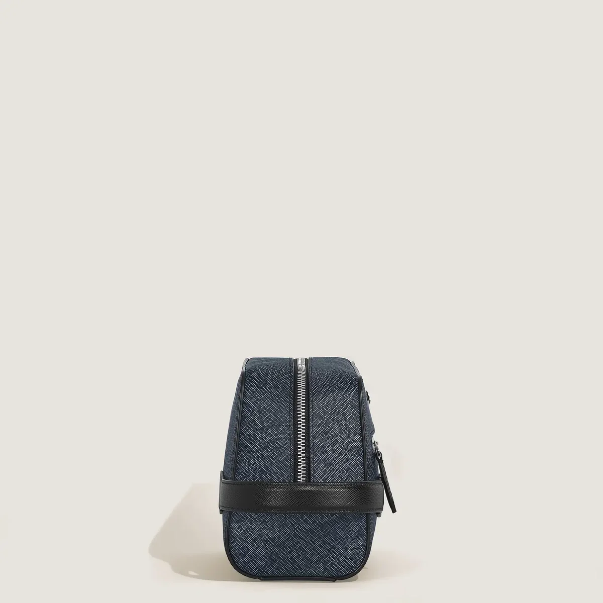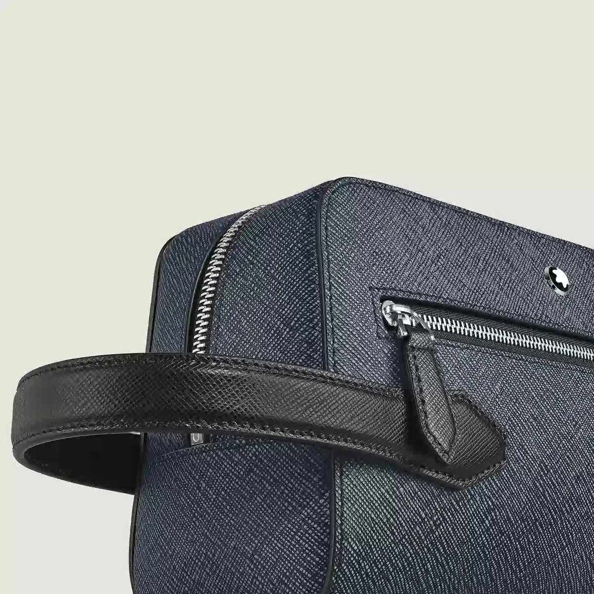 Fie că este vorba de călătorii de afaceri sau de vacanțe, această poșetă este un accesoriu indispensabil. Confecționată din piele Sartorial embosată, într-o combinație rafinată de două nuanțe, albastru și negru, are un interior spațios și un buzunar exterior cu fermoar pentru obiectele esențiale. Mânerele din piele vă permit să o purtați în mână sau să o puneți într-o geantă de călătorie.