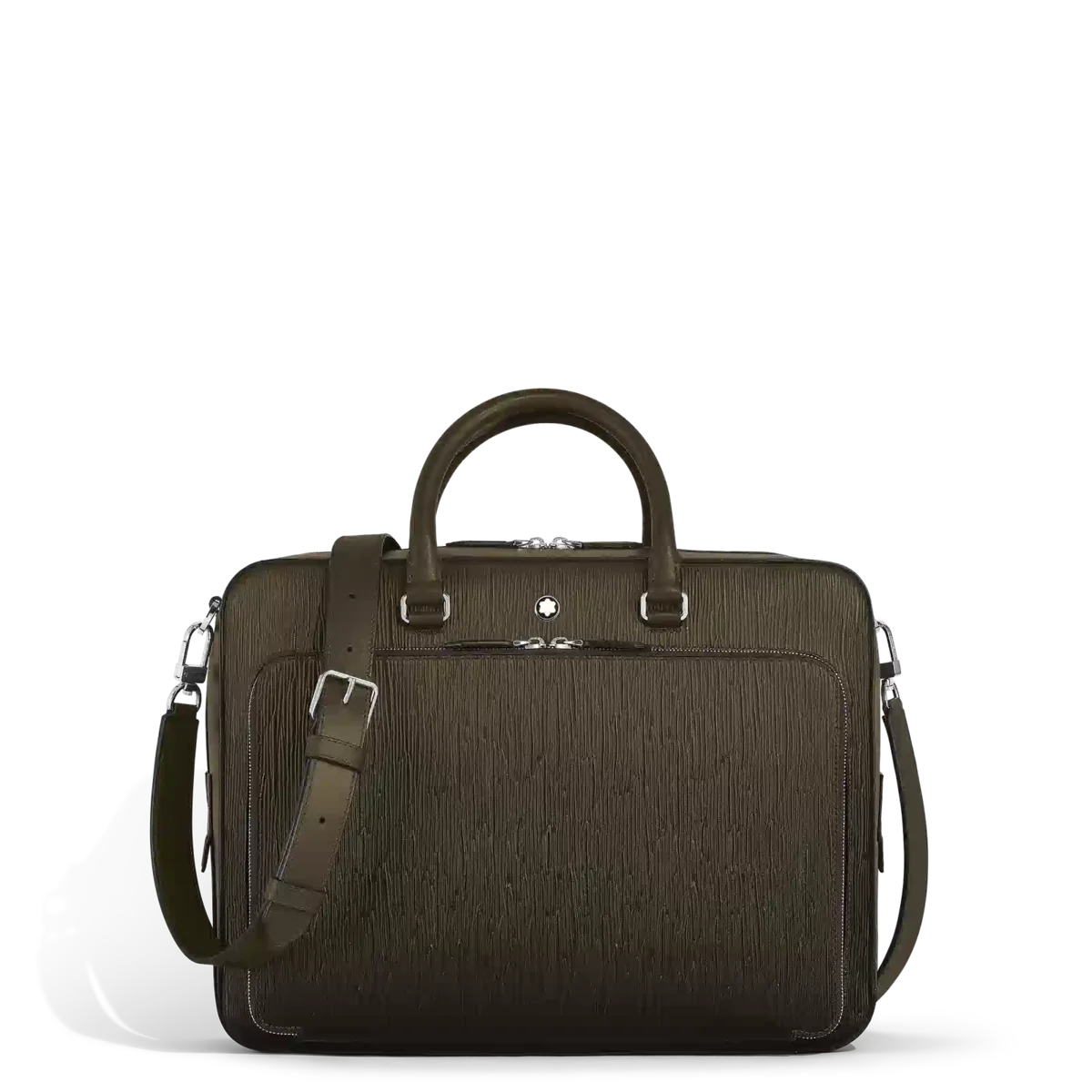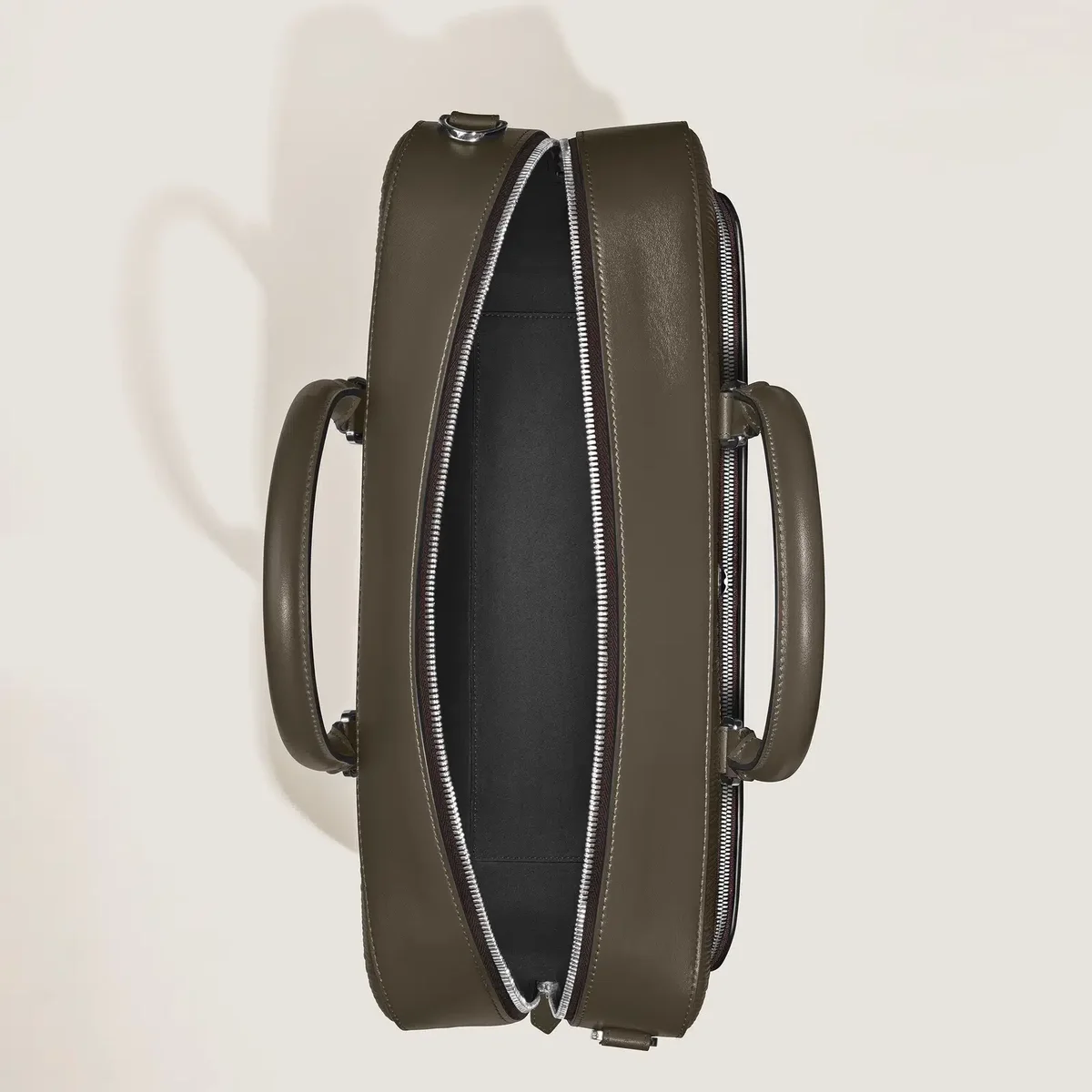 Această servietă din piele Corteccia de culoare kaki este concepută pentru a inspira creativitatea în deplasare. Motivul său vertical unic, subliniat de efectul sfumato aplicat manual, reflectă frumusețea naturală a scoarței de copac într-o paletă rafinată, în tonuri naturale. Ca un cabinet de curiozități, buzunarul mare cu fermoar din față se deschide, transformând servieta într-un birou portabil cu trei bucle pentru instrumente de scris, un suport pentru ceas, un buzunar deschis și curele din piele pentru a fixa un caiet. În interiorul servietei, un compartiment principal spațios include o secțiune căptușită pentru laptopuri de până la 13″. Completată cu o curea detașabilă pentru umăr și un sistem satelit pentru atașarea la troler, acest obiect unic transformă călătoriile și afacerile în oportunități de inspirație și creativitate.