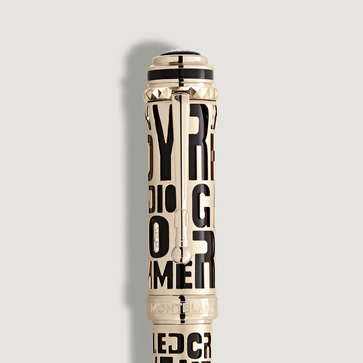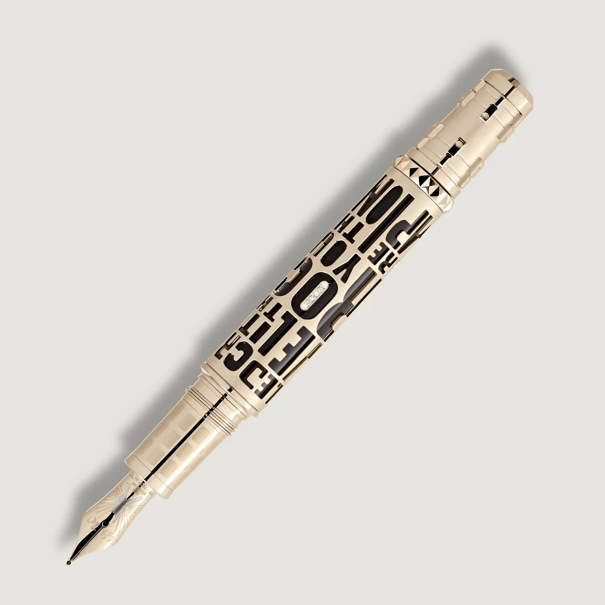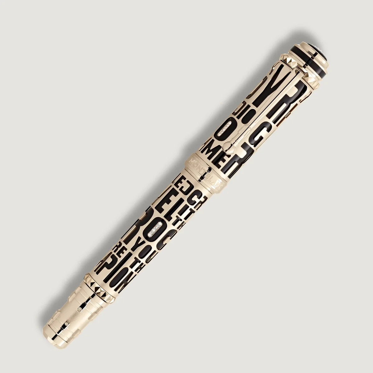 În bogata istorie a muzicii rock, puține nume au strălucit în mod constant precum cel al formației Queen. Cu o carieră de peste cinci decenii, formația este una dintre cele mai de succes din toate timpurile. În această perioadă, Queen a ajuns să întruchipeze puterea creativității muzicale. Au creat propriul univers muzical, alcătuit dintr-o combinație de hard rock, glam rock, pop, funk și operă, spulberând granițele dintre genuri. Montblanc dedică ediția limitată Great Characters Homage to Queen 95 acestor icoane ale muzicii rock. Apariția lor la legendarul concert caritabil Live Aid din 1985, de la Londra, este considerată unul dintre cele mai mari momente din istoria muzicii rock. Cele șase piese interpretate de Queen decorează stratul solid de aur Au 750, contrastând cu lacul negru intens de dedesubt: Bohemian Rhapsody, Radio Ga Ga, Hammer to Fall, Crazy Little Thing Called Love, We Will Rock You și piesa electrizantă de închidere We Are the Champions. Modelul gravat pe partea din față este inspirat din scenografia acelui concert memorabil.Singura notă extravagantă pe care solistul și-a permis-o, o banderolă cu ținte și o centură asortată, a inspirat designul capacului și al inelelor conice. Un suport de microfon a inspirat designul clemei, reprezentând concertele electrizante ale formației Queen. O coroană – purtată uneori de Freddie Mercury în timpul interpretării finale a piesei God Save The Queen – a fost sursa de inspirație pentru silueta capacului.Designul conului aduce un omagiu, asemănându-se cu butoanele caracteristice de control al volumului și tonului chitarei electrice construite de Brian May. Modelul de tobe de pe con îl onorează, de asemenea, pe membrul fondator Roger Taylor, un baterist și compozitor strălucit. La patru ani după moartea lui Freddie Mercury, sunetul original al vocii sale a fost auzit din nou: albumul Made in Heaven din 1995 a inclus ultima sa înregistrare. Anul lansării a dictat numărul limitat de piese, 95, în timp ce coperta LP-ului – silueta lui Freddie Mercury într-una dintre cele mai iconice și triumfătoare poziții de scenă ale sale – a inspirat gravura de pe penița artizanală, bicoloră, din aur masiv Au 750.