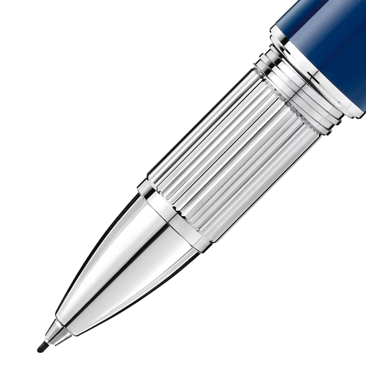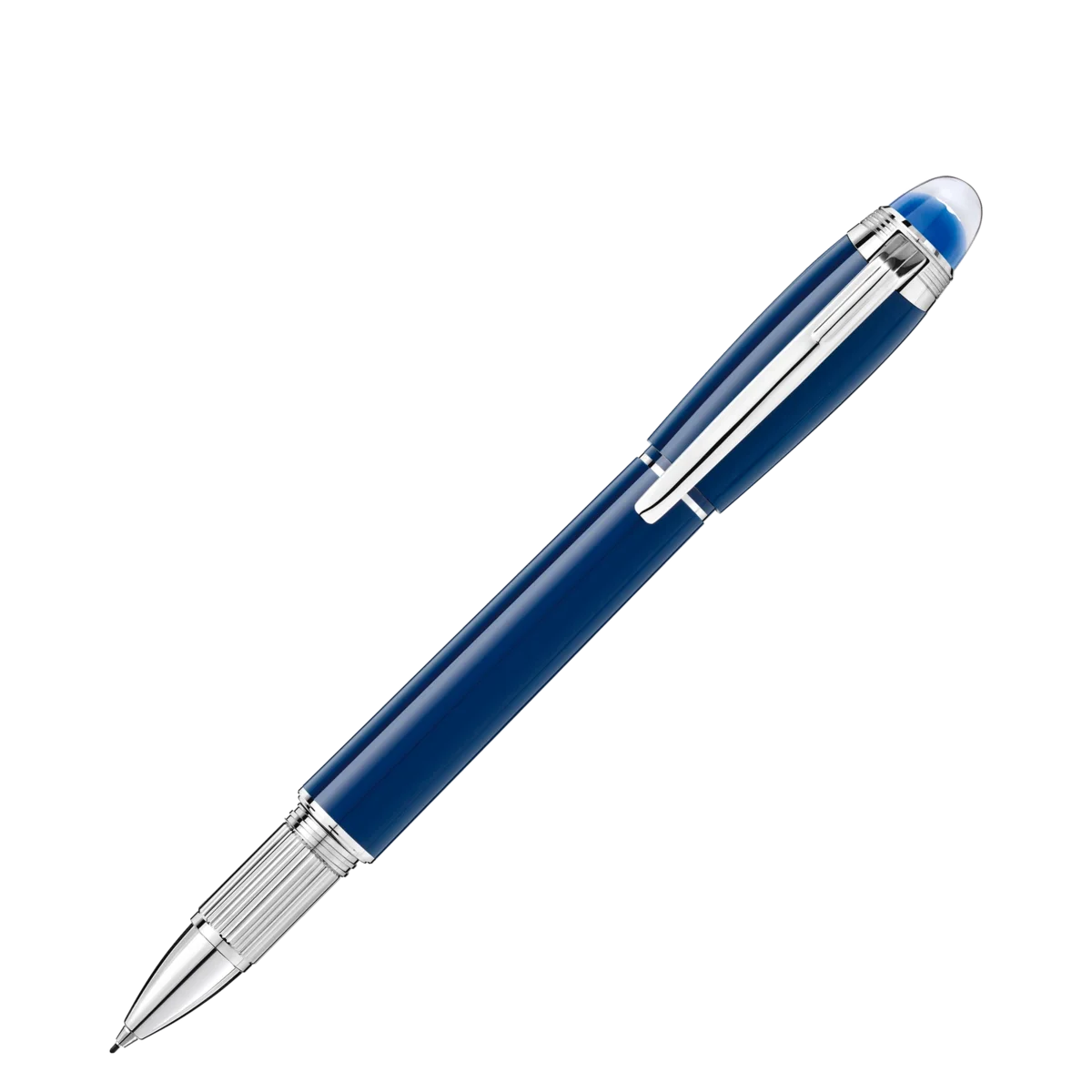 StarWalker Blue Planet înseamnă să pășești printre stele, să explorezi cosmosul și galaxiile străine și să faci parte din una dintre cele mai misterioase și puternice aventuri pe care le-a întreprins vreodată omenirea: explorarea spațiului. Apropiindu-ne de planeta noastră, Pământul, ne inspirăm din apă, sursa vieții. Tehnologia emblemei StarWalker prezintă un dom albastru translucid cu o stea plutind deasupra, care reprezintă Pământul care apare deasupra orizontului lunar, așa cum se vede de pe Lună. StarWalker Precious Resin Fineliner este prevăzut cu accesorii placate cu platină și un corp și un capac din rășină prețioasă albastră.