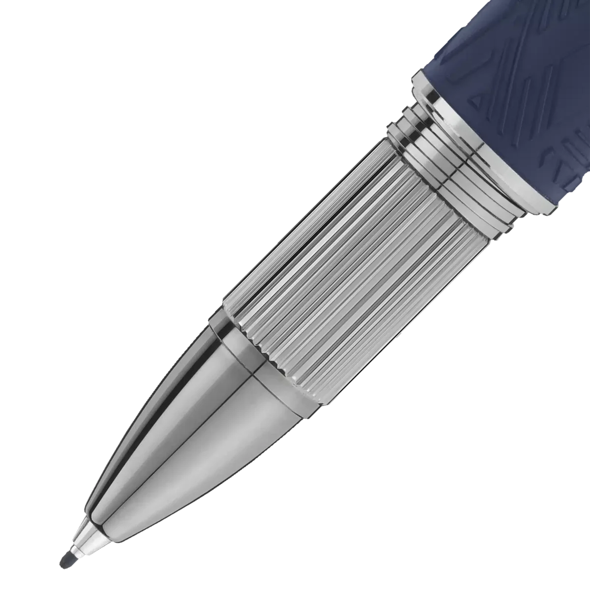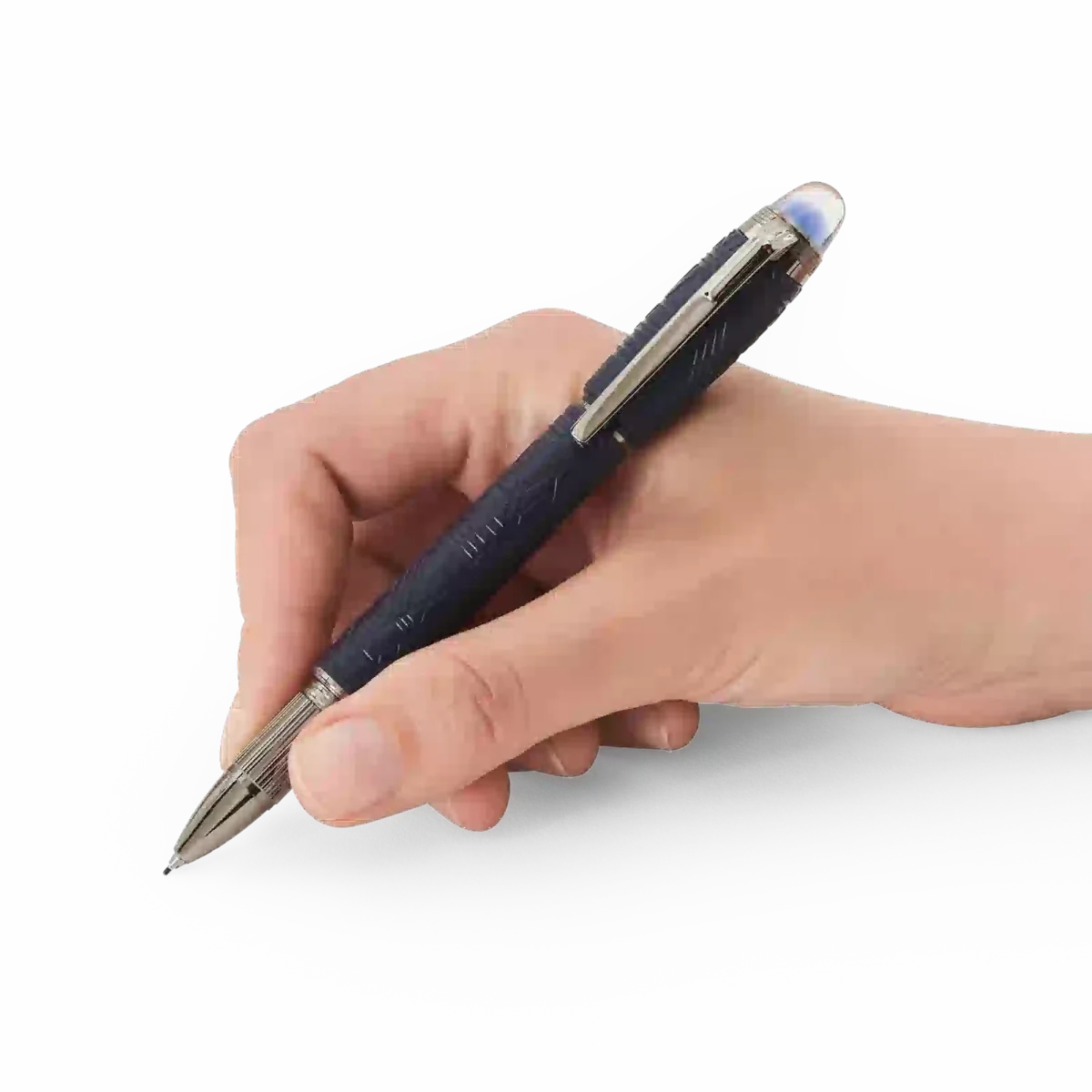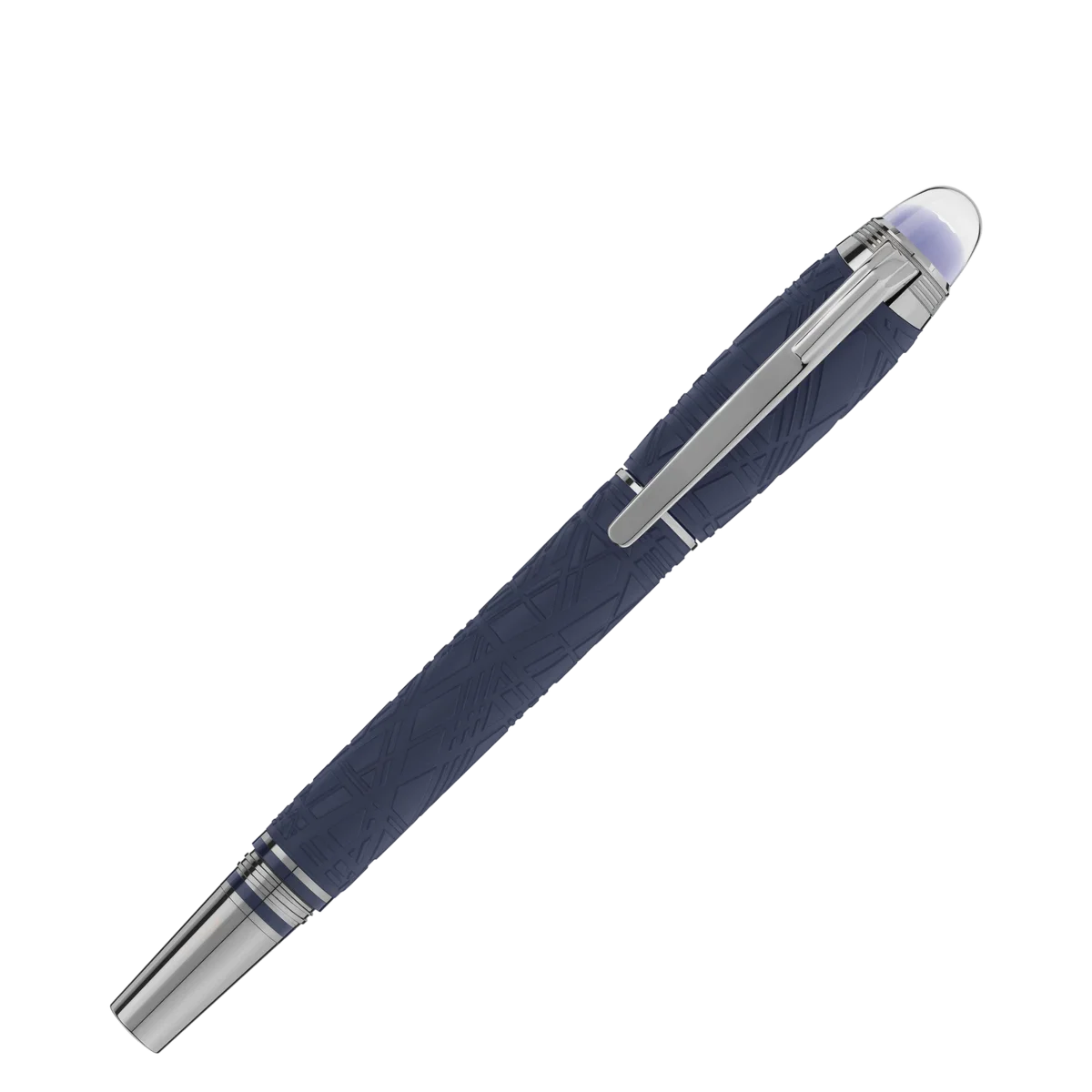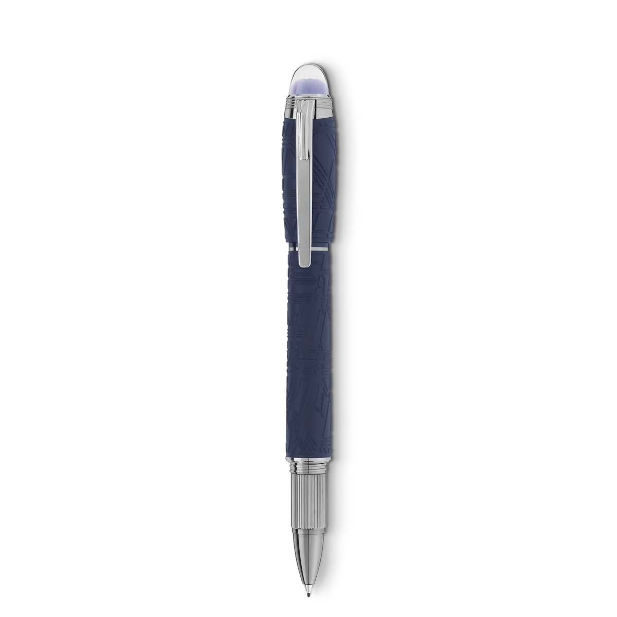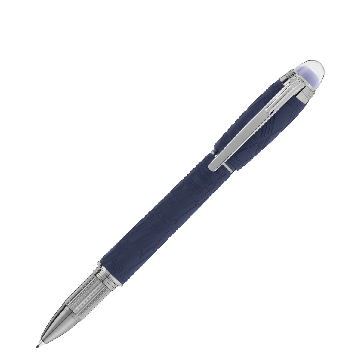 StarWalker SpaceBlue privește dincolo de planeta Pământ și se îndreaptă spre stele și galaxie. Noua colecție StarWalker aduce un aspect nou capacului și corpului din rășină, cu un design care amintește de structurile complexe ale modelului Widmanstätten, una dintre cele mai hipnotice creații ale naturii. Toate părțile metalice sunt acoperite cu ruteniu închis la culoare, însoțit de o nuanță albastră intensă a spațiului cosmic pentru rășina prețioasă mată, care amintește de nuanțele unui cer înstelat. În plus, subdomenul de pe vârful capacului, peste care plutește emblema Montblanc, are o culoare albastră intensă a spațiului cosmic.