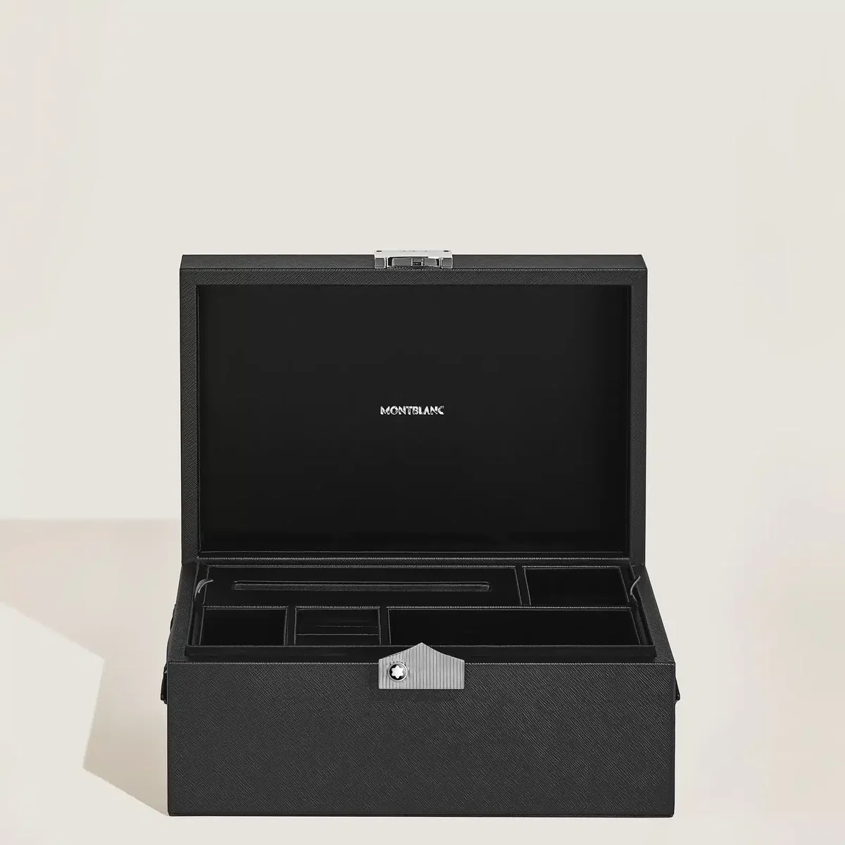 Descoperiți toate detaliile cutiei de colecție pentru instrumente de scris din piele neagră. Cumpărați online de pe magazinul oficial Montblanc.