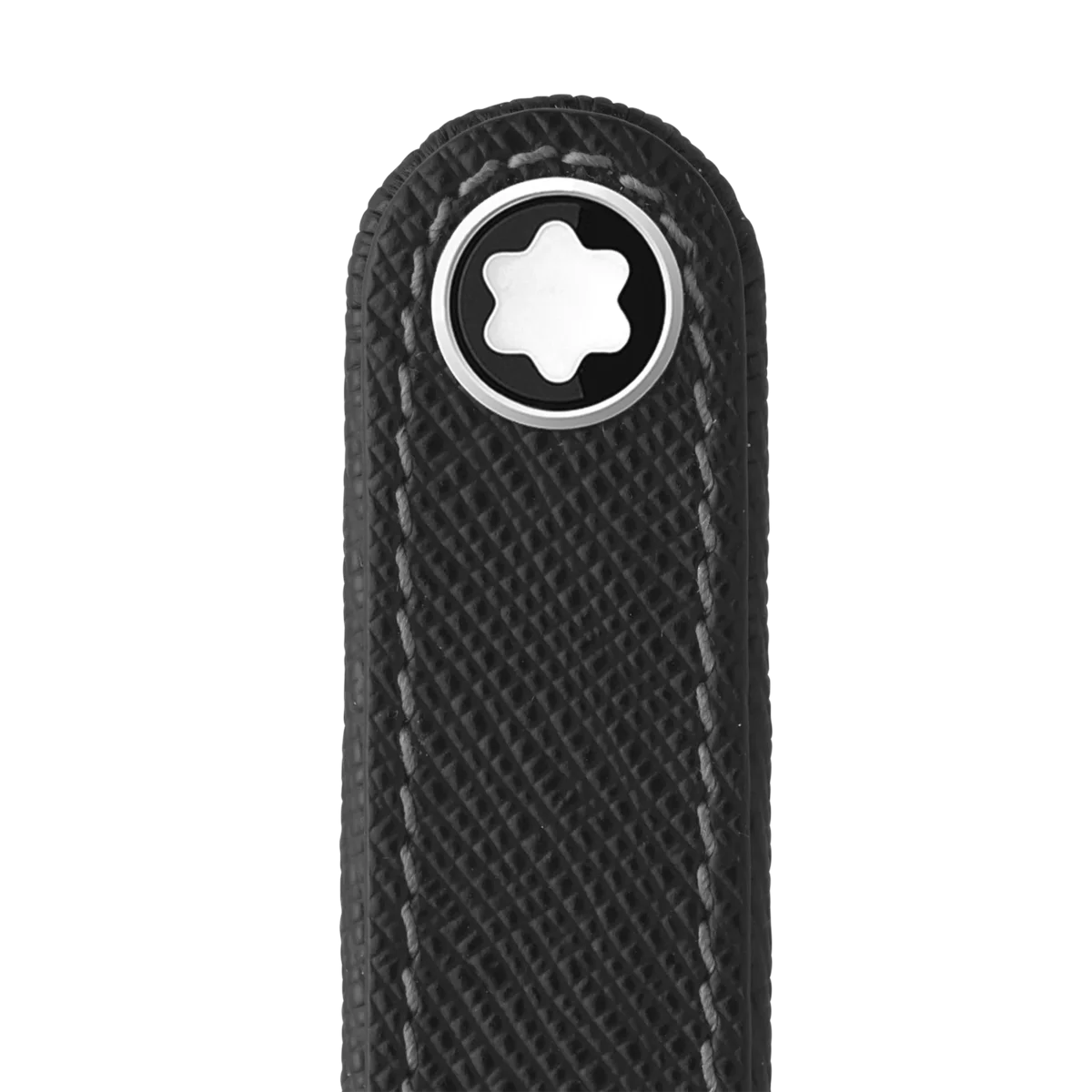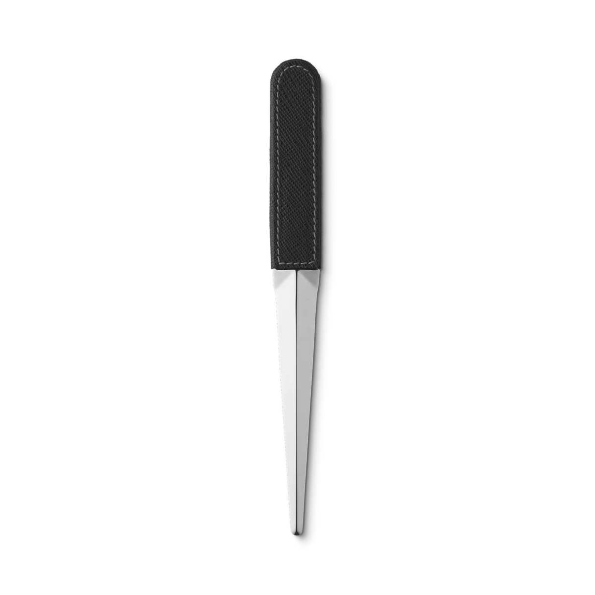 Cuțit de deschis scrisori Montblanc din oțel, placat cu ruteniu, cu inserție din piele moale neagră.