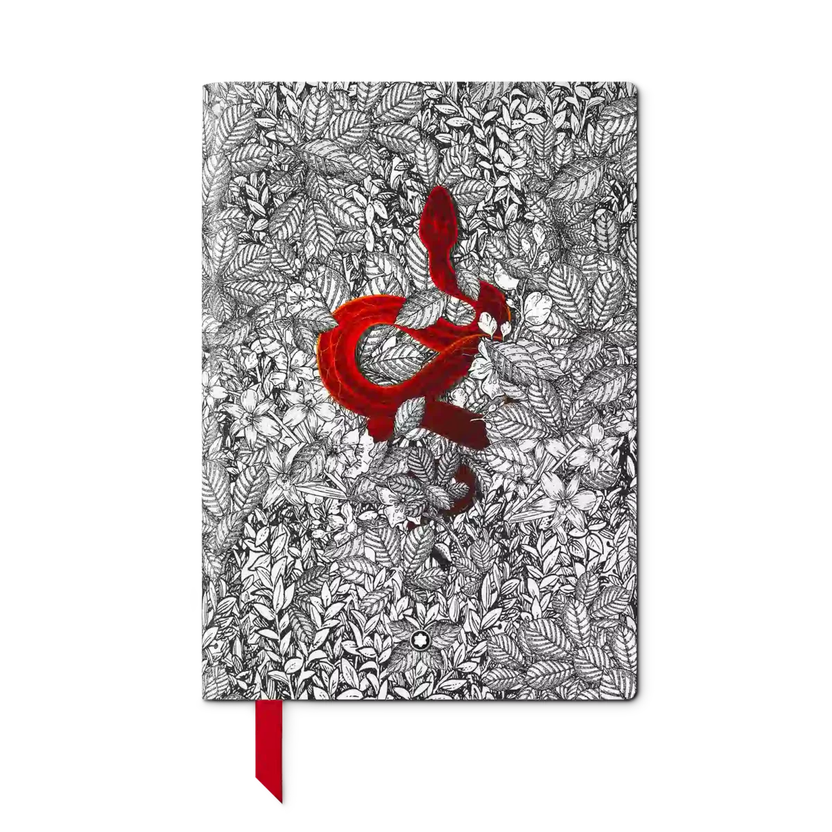 Caiet #146 mic, The Legend of Zodiac, the Snake, Grey – Liniat. Fabricat din piele moale cu imprimeu digital cu șerpi și model cu frunze pe toată suprafața caietului. Fabricat în Italia. 96 de foi / 192 de pagini. Dimensiuni 150 x 210 mm.