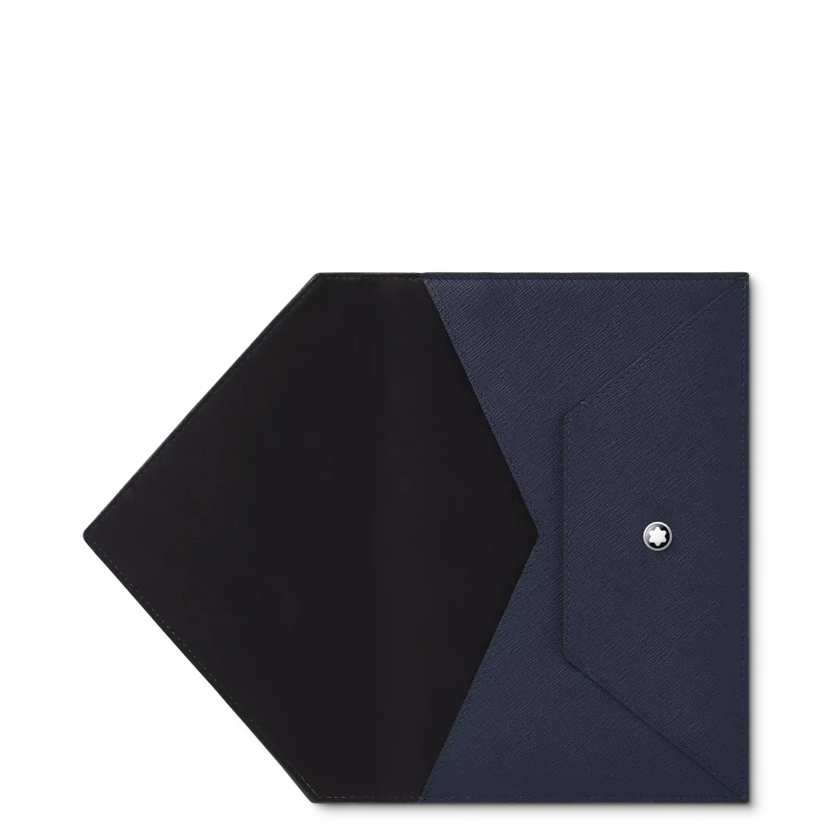 Caiet Montblanc Sartorial Envelope din piele saffiano albastru cerneală. În omagiu adus lumii scrisului, designul contemporan al accesoriului amintește de forma unui plic. Acest plic din piele are două buzunare pentru obiecte mai mici. Emblema Montblanc împodobește închizătoarea cu clapă. Caietul Envelope este prevăzut cu refill #146 cu linii, care se atașează cu capse. Dimensiuni 160 x 210 mm. Fabricat în Italia.