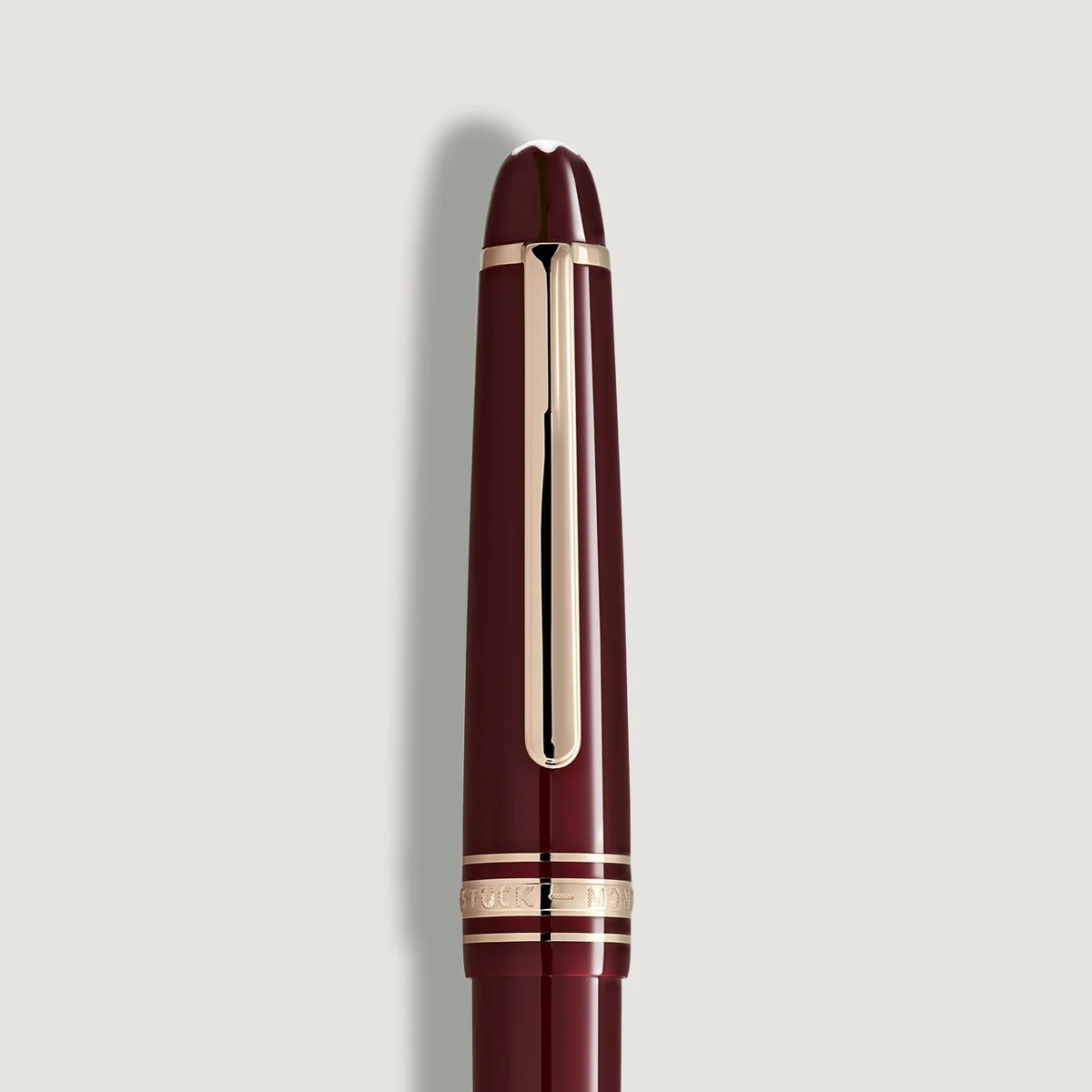Designul atemporal al Montblanc Meisterstück Classique Burgundy Red face referire la istoria Maison, culoarea burgundy fiind o nuanță proeminentă încă din anii 1920. De atunci, această culoare a rămas un element de bază în moștenirea Montblanc. Capacul și corpul stiloului Meisterstück Burgundy Red sunt realizate din rășină prețioasă de culoare burgund, cu accesorii aurii caracteristice, iar în partea superioară a capacului este încrustat emblema albă Montblanc. Instrumentul de scris este împodobit cu un peniț solid din aur Au585/14K realizat manual, acoperit cu aur. Prin „aur semnătură”, Montblanc descrie nuanța luminoasă a aurului galben, care a devenit o nuanță apreciată pentru instrumentele de scris ale Maison.