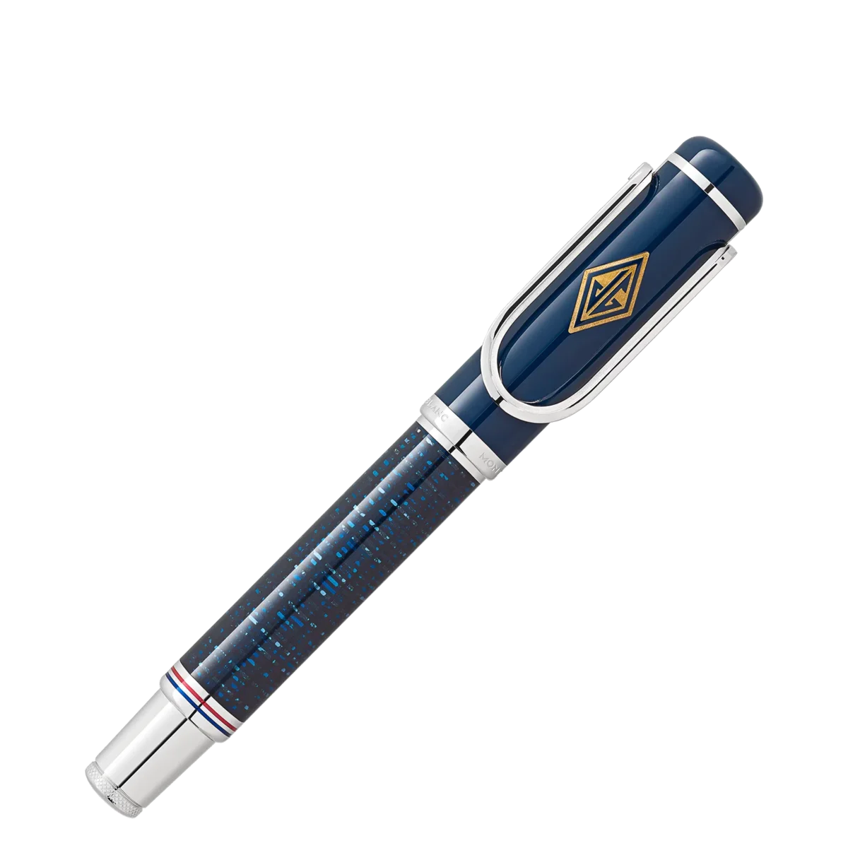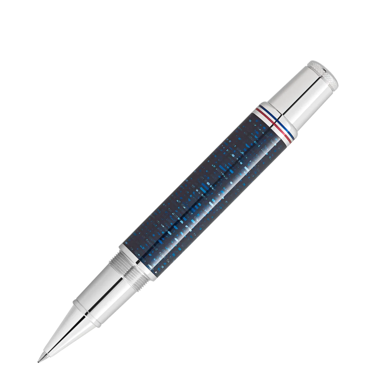 Anumite romane rămân în istoria literară și, în același timp, ajung să simbolizeze o întreagă epocă. „Marele Gatsby” al lui F. Scott Fitzgerald este una dintre aceste bijuterii ale literaturii americane moderne. Publicat în 1925, romanul zugrăvește o imagine fascinantă a epocii jazzului și a anilor ’20, o perioadă de prosperitate și autoindulgență fără precedent. Orașul New York pulsând de viață, vilele opulente din Long Island și petrecerile strălucitoare ale înaltei societăți constituie fundalul poveștii lui Jay Gatsby, un milionar misterios, care nu se va da în lături de la nimic pentru a recâștiga afecțiunea iubirii pierdute din tinerețe, Daisy Buchanan.New York-ul strălucitor al epocii Gatsby, unde zgârie-norii Art Deco sclipitori pe cerul albastru al serii au inspirat designul ediției speciale Great Characters Homage to The Great Gatsby. Creată ca un omagiu adus unui instrument de scris Montblanc din epoca Art Deco, suprafața corpului, realizată folosind o tehnică specială, pare să reflecte fațadele luminate ale zgârie-norilor orașului în plină expansiune, noaptea. Nu este un dispozitiv fictiv, ci strălucește ca lumina verde de pe docul casei lui Daisy din „The Great Gatsby”. Emblema fluorescentă Montblanc din vârful capacului captează și stochează lumina în timpul zilei, astfel încât să strălucească în întuneric. Puterea aparentă a banilor este simbolizată în această ediție de clema acoperită cu platină, care are forma unei cleme pentru bani. Deschiderea sa rotunjită strălucește cu inițialele lui Jay Gatsby sub forma unui monogram Art Deco romboidal acoperit cu aur. Mitul visului american și designul flacoanelor elegante din perioada Art Deco sunt evocate de conul care imită capacul cu șurub gravat al unui flacon și inelele fine în culorile steagului american care îl înconjoară.