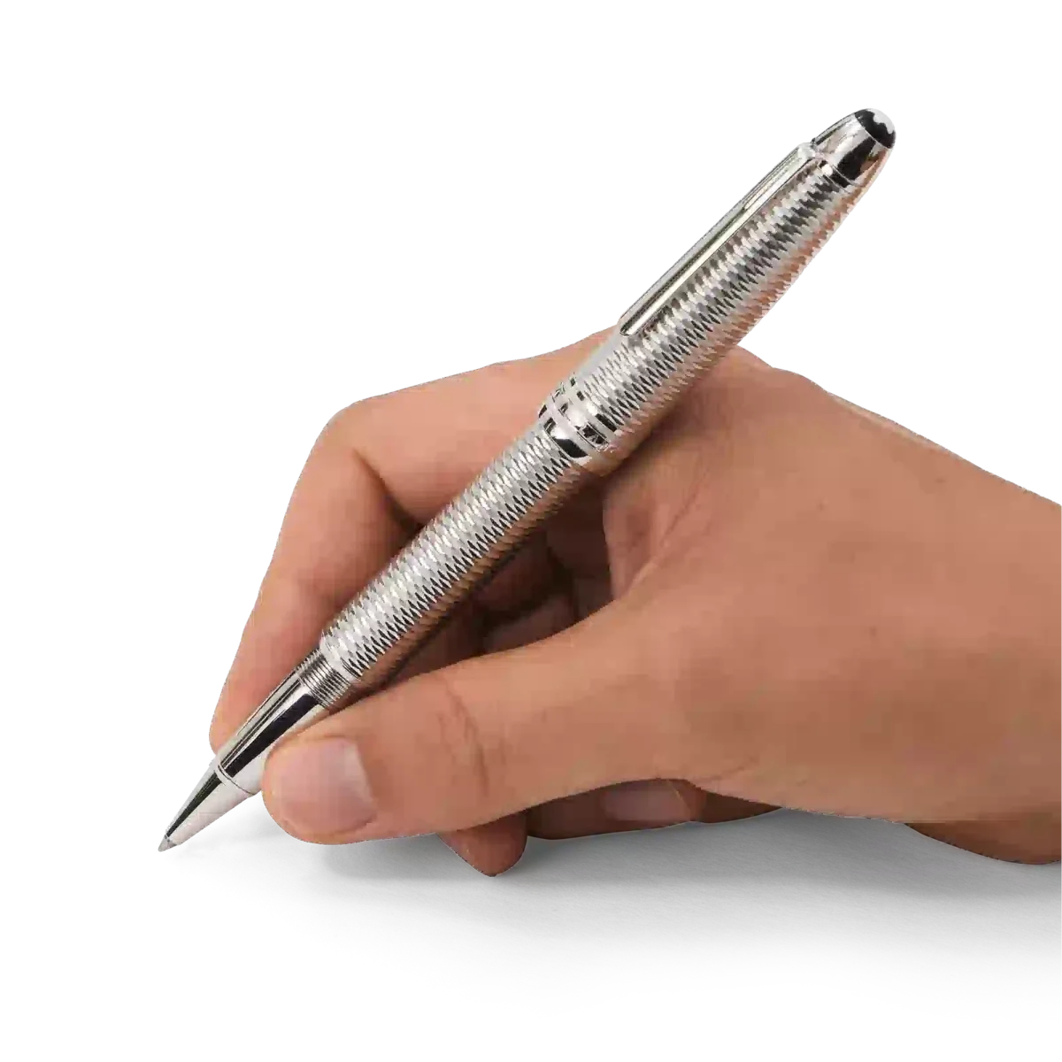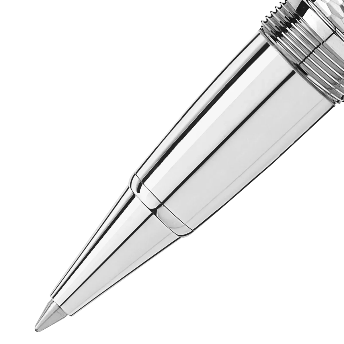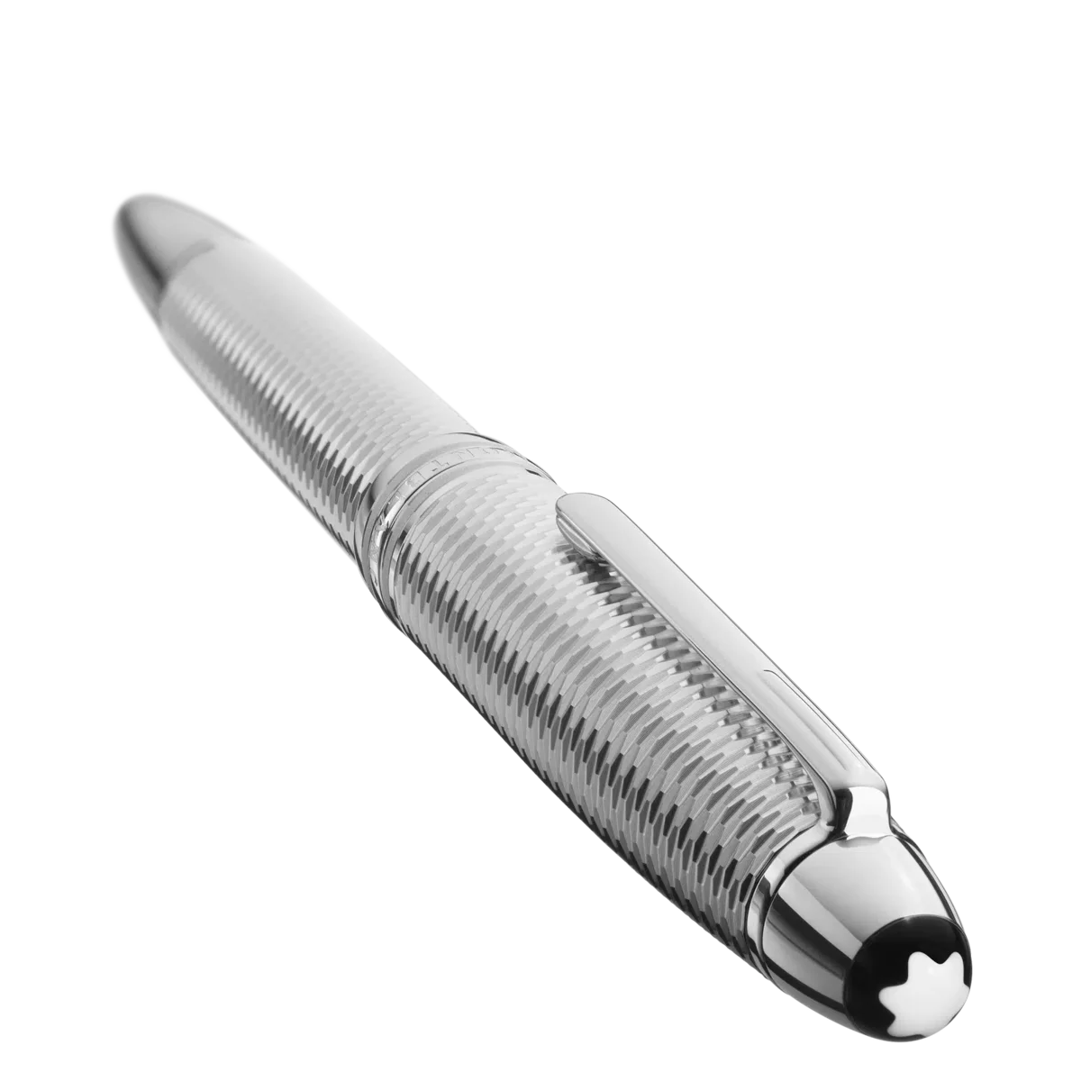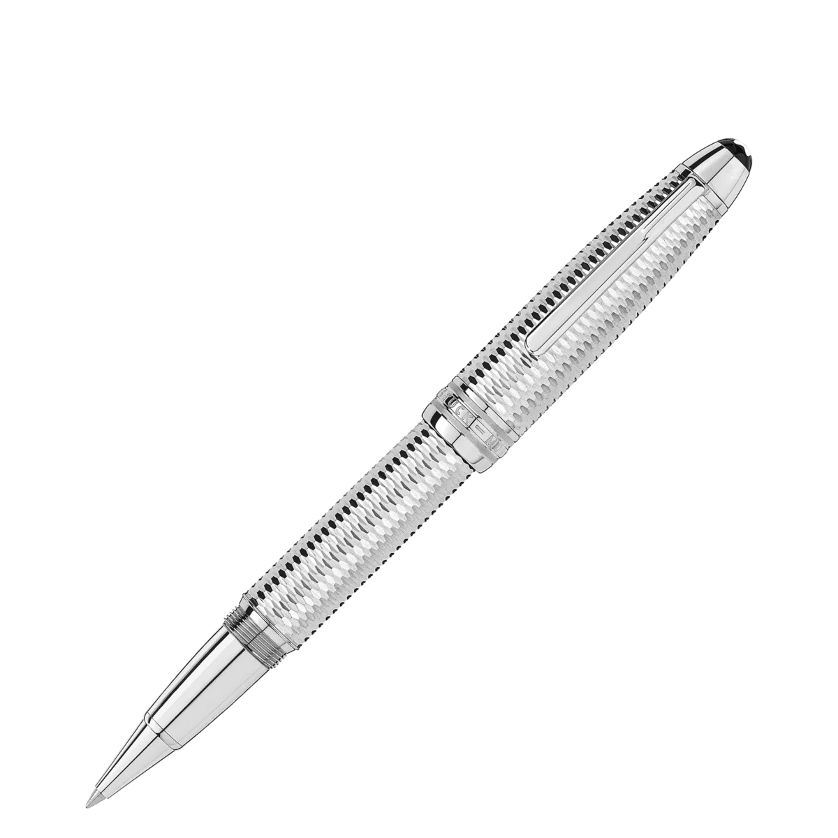 Meisterstück Solitaire Geometric Dimension a luat naștere din dorința de a uni designul clasic Montblanc cu materiale unice. Acest instrument de scris, gravat cu un model geometric tridimensional cu efect optic într-o nuanță sofisticată de platină, are un clip acoperit cu platină și trei inele acoperite cu platină, gravate cu numele mărcii Montblanc. Finisat cu emblema Montblanc, acesta face apel la individualitatea fiecăruia.